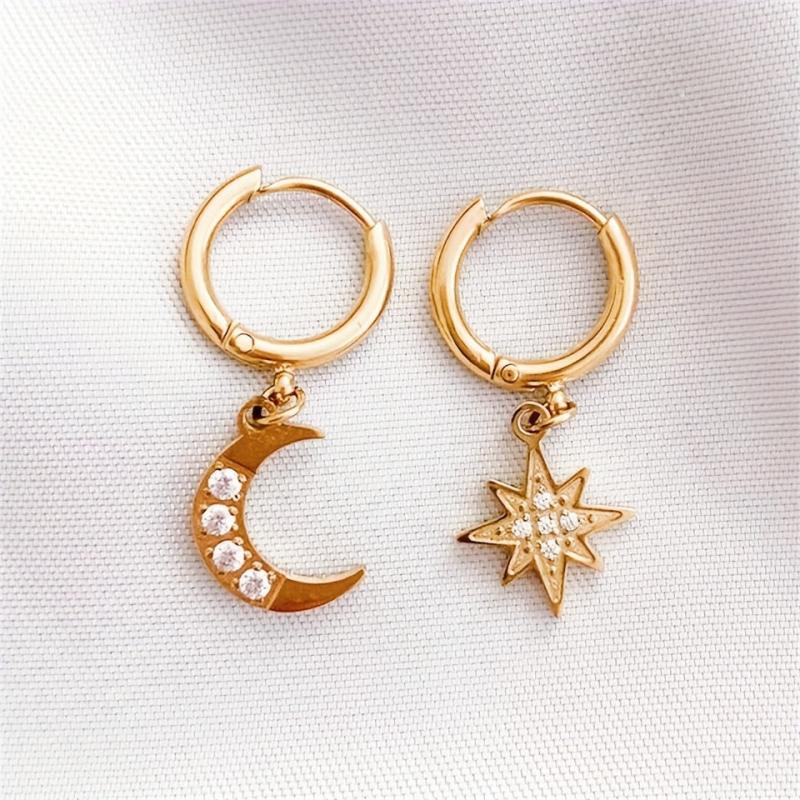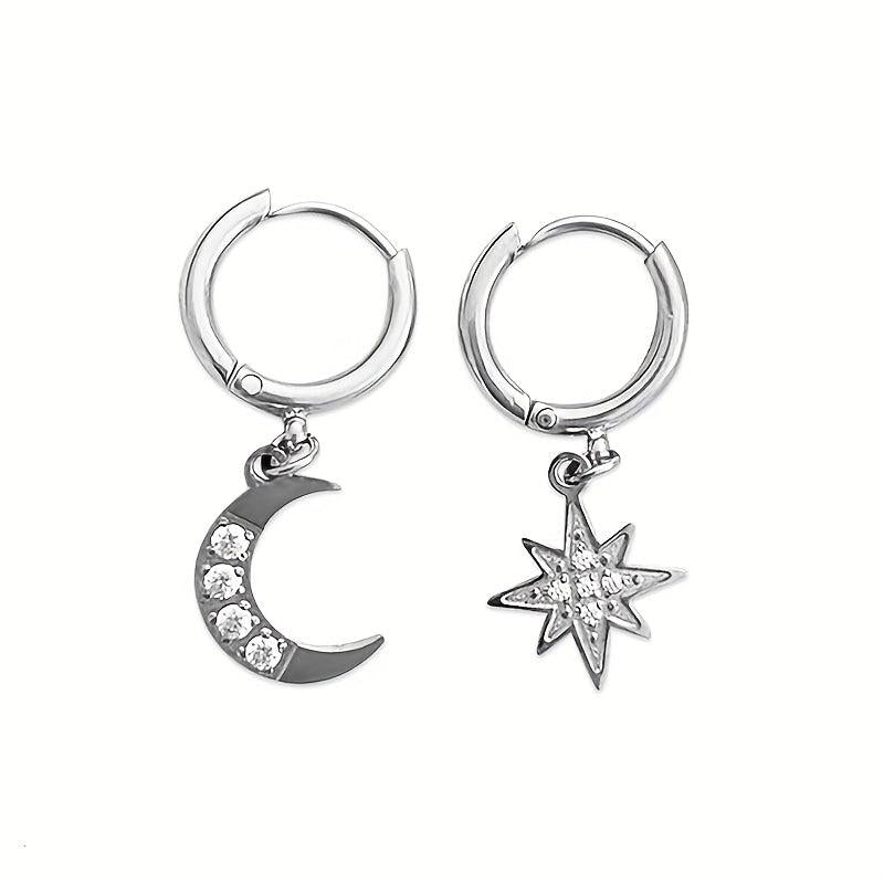 These stainless steel earrings feature a crescent moon and star design, perfect for parties or everyday wear. They make a great accessory year-round.