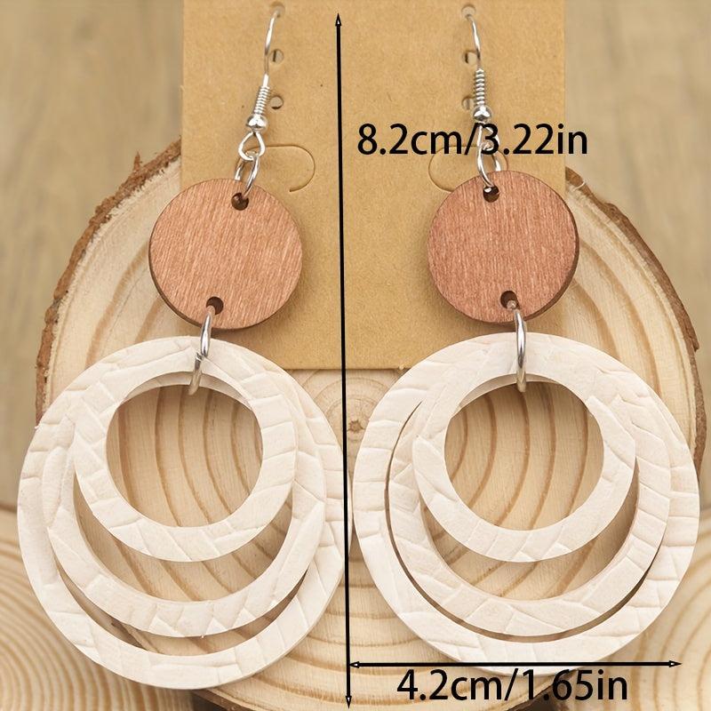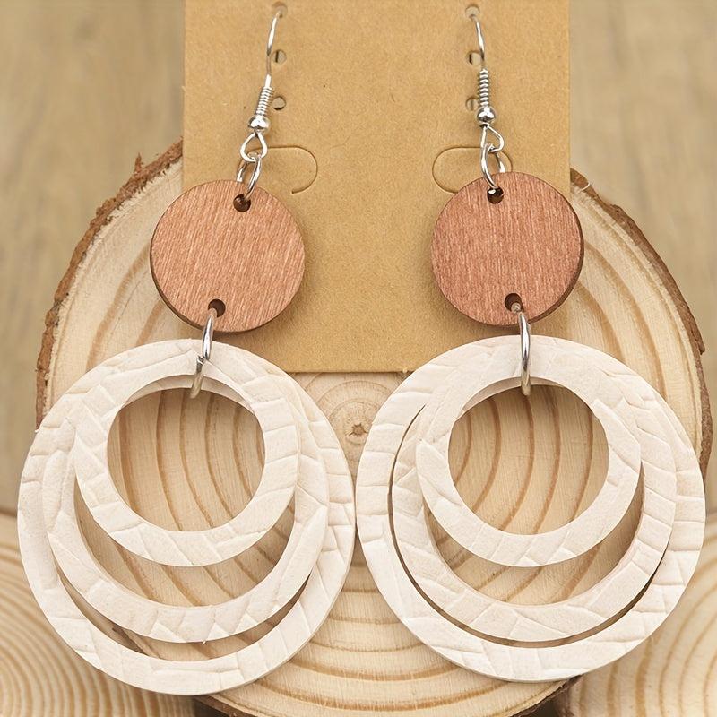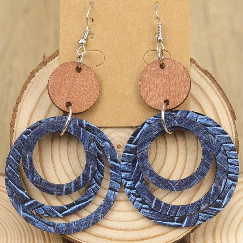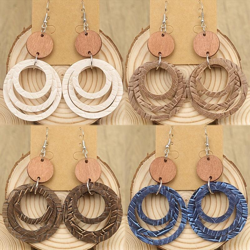 Enhance your style with these Bohemian-inspired PU leather earrings. The stacked wooden patchwork design adds a touch of sophistication to your outfit.