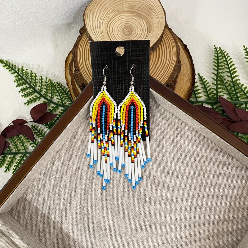 Hand-woven tassel earrings with a unique retro geometric pattern. Made with durable glass beads, these earrings are perfect for daily wear and special occasions.