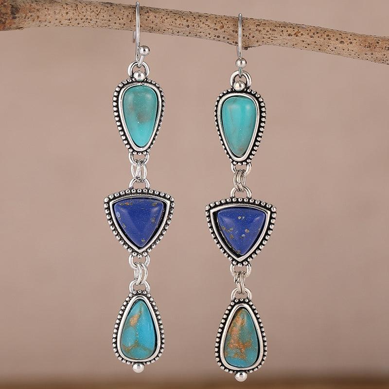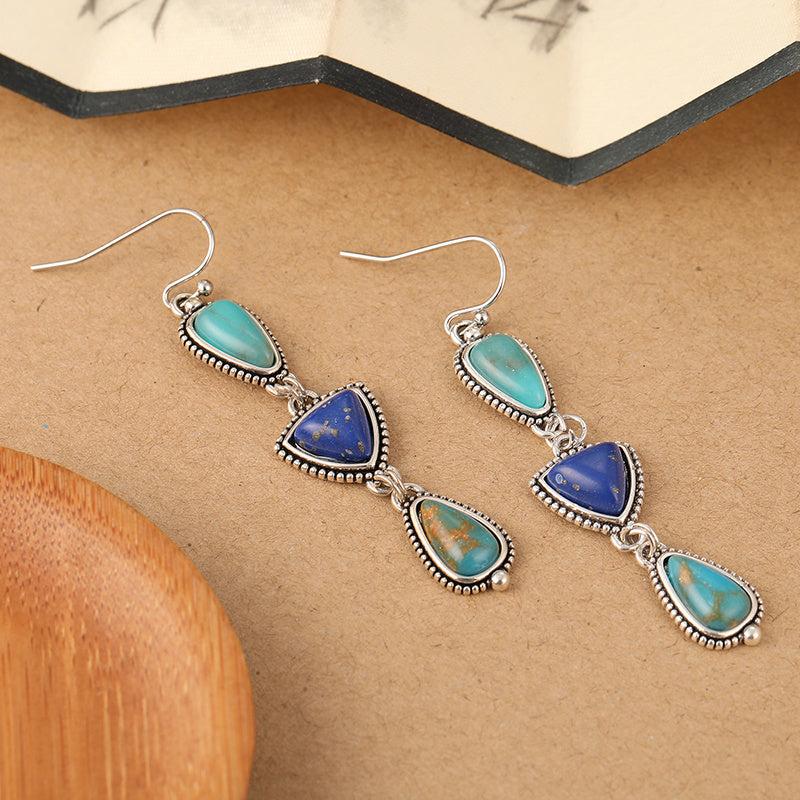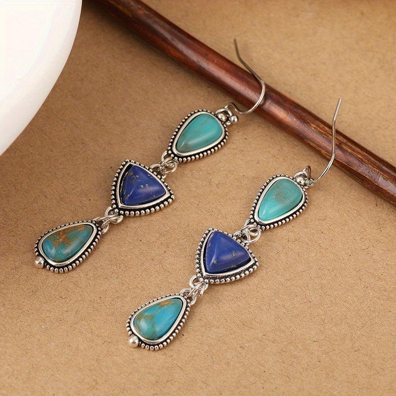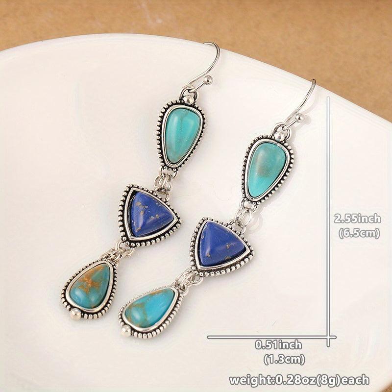 These vintage style earrings feature synthetic turquoise stones with silver plating, making them a perfect accessory for Valentine's Day and all occasions.