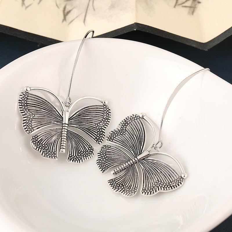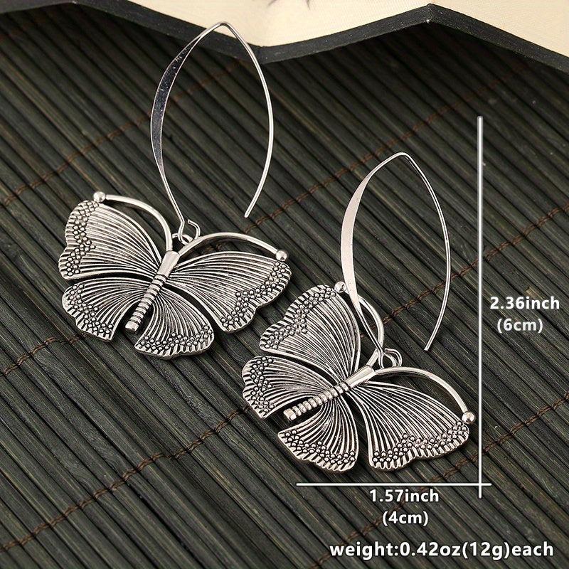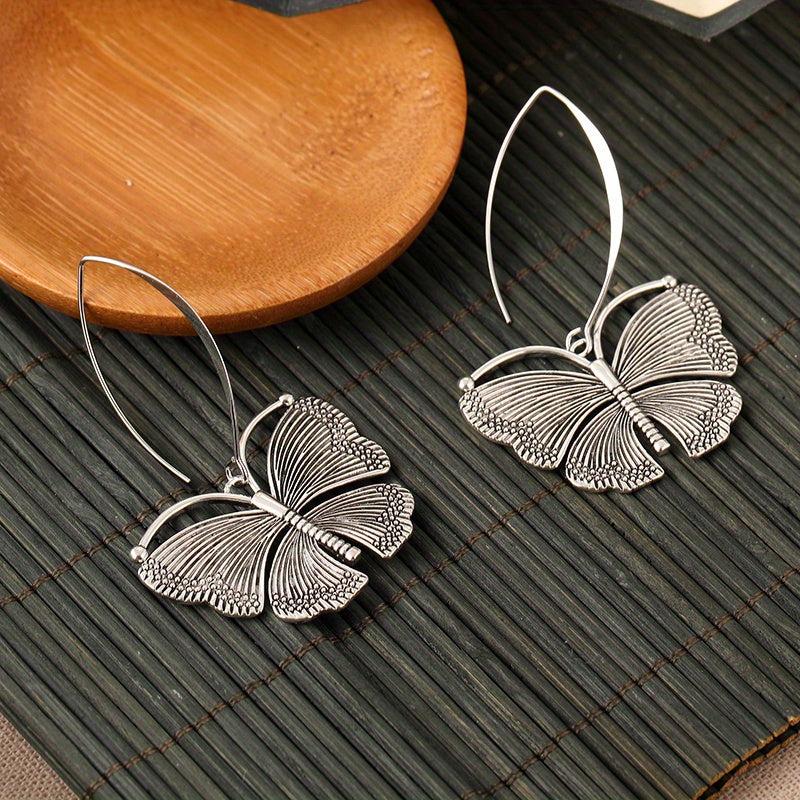 Vintage boho butterfly earrings made of silver-plated copper, perfect for daily wear or parties. Ideal Christmas or holiday jewelry gift that can be worn all year.