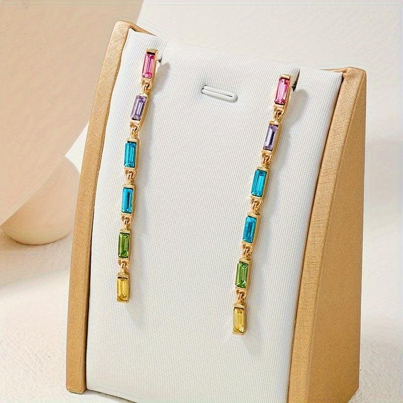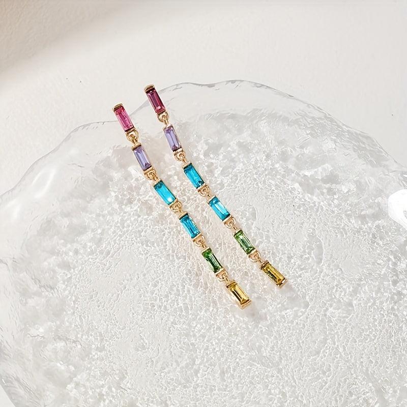 Elegant and vibrant, these dangle earrings feature colorful rhinestones adding a touch of boho charm. Made with stainless steel posts and alloy, they are perfect for daily wear and make a great gift for any occasion.