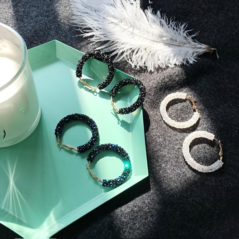 Make a statement with these large sparkling crystal hoop earrings. These boho chic earrings are perfect for adding a touch of glam to any outfit. Ideal for birthdays or special occasions.