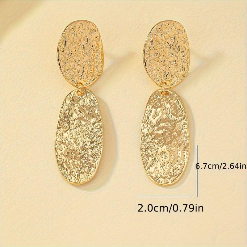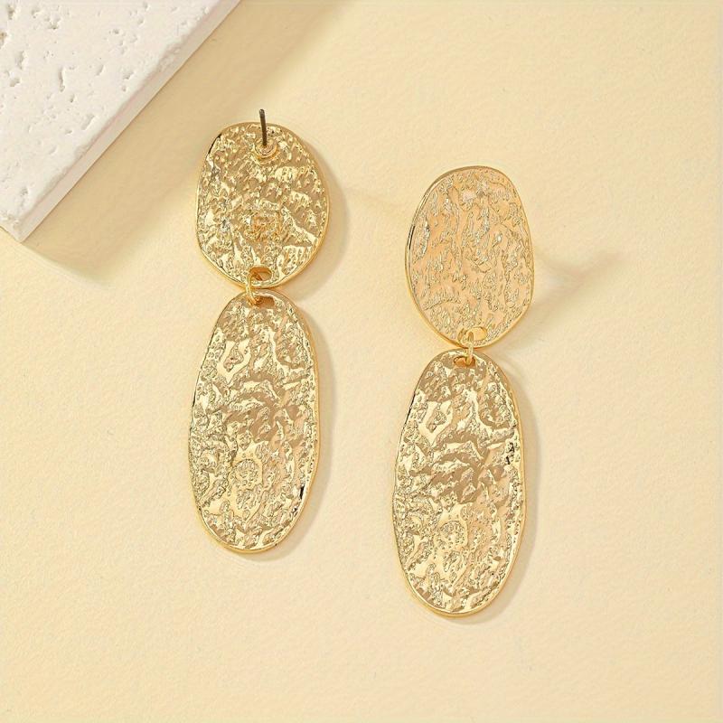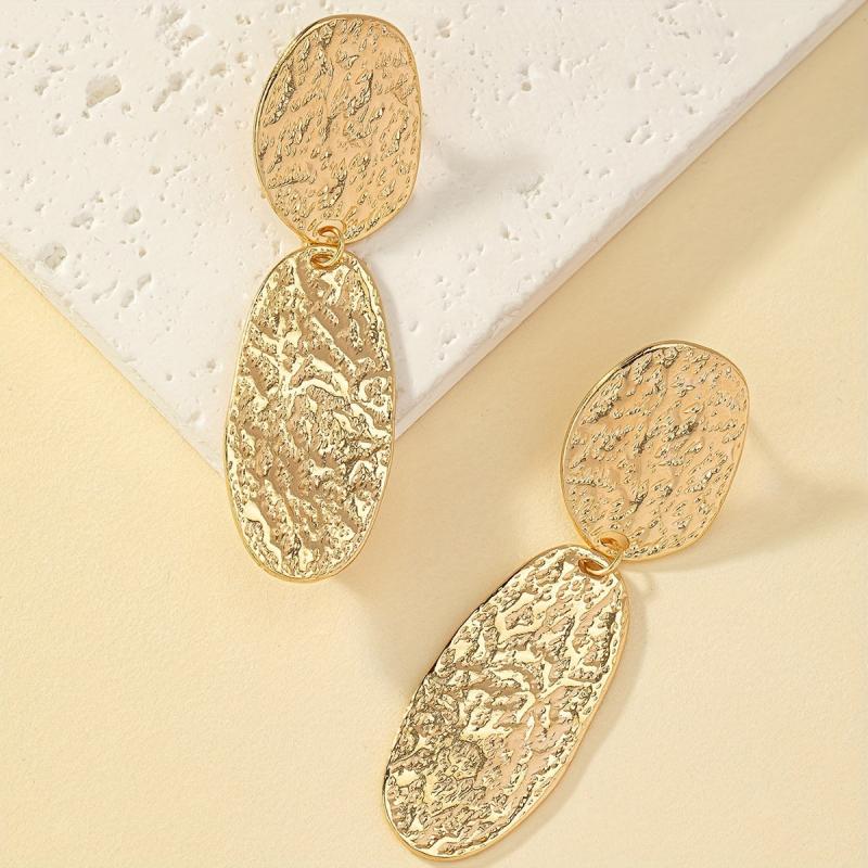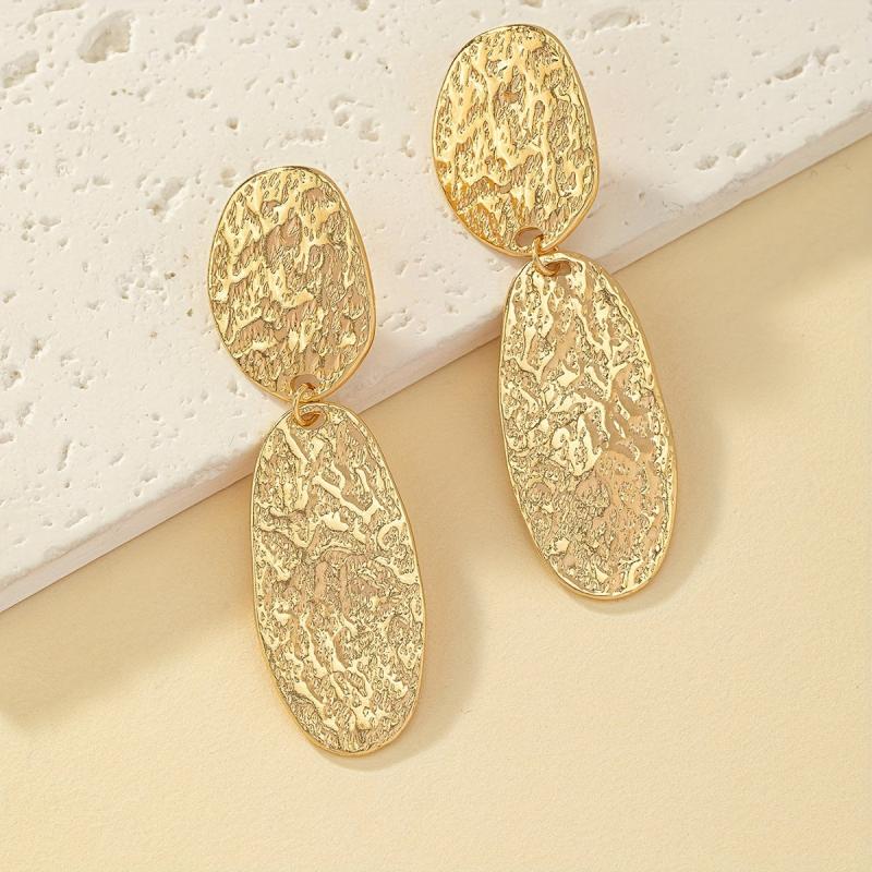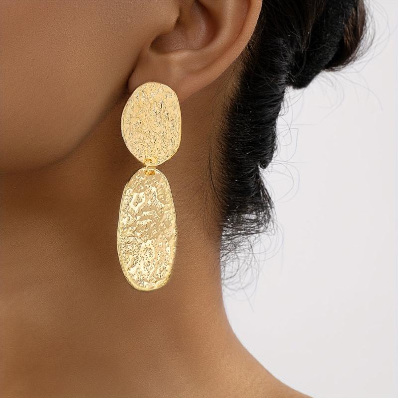 These Boho Urban Alloy Drop Earrings feature a unique design with an irregular stone pattern. Made with stainless steel posts for durability and style.