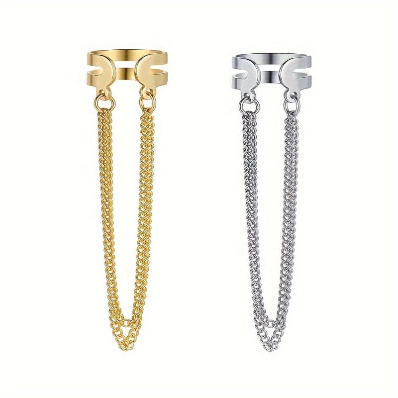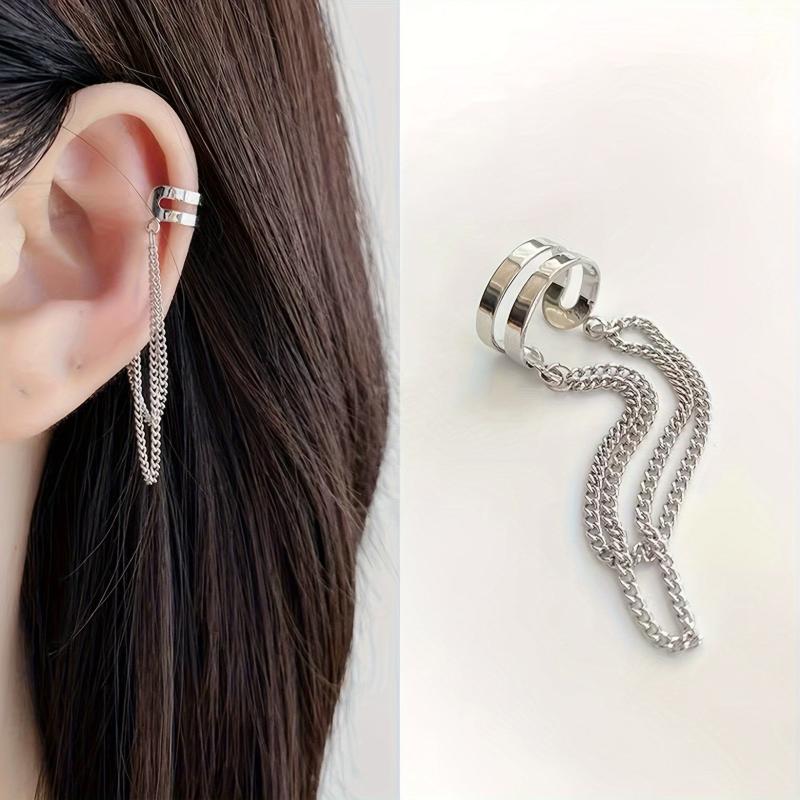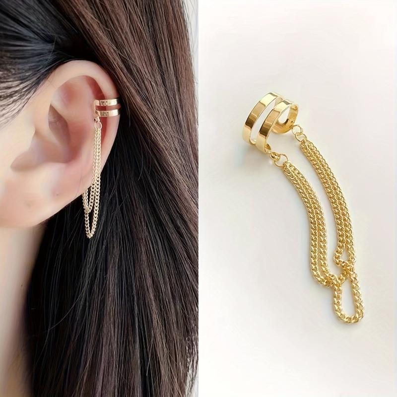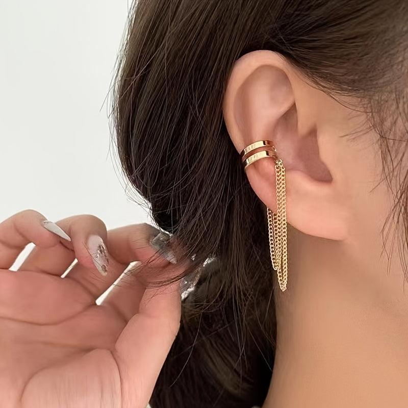 Elevate your style with these bohemian-inspired double layer tassel chain clip-on earrings. Made of iron, these long earrings add a unique touch to any outfit without the need for piercings.