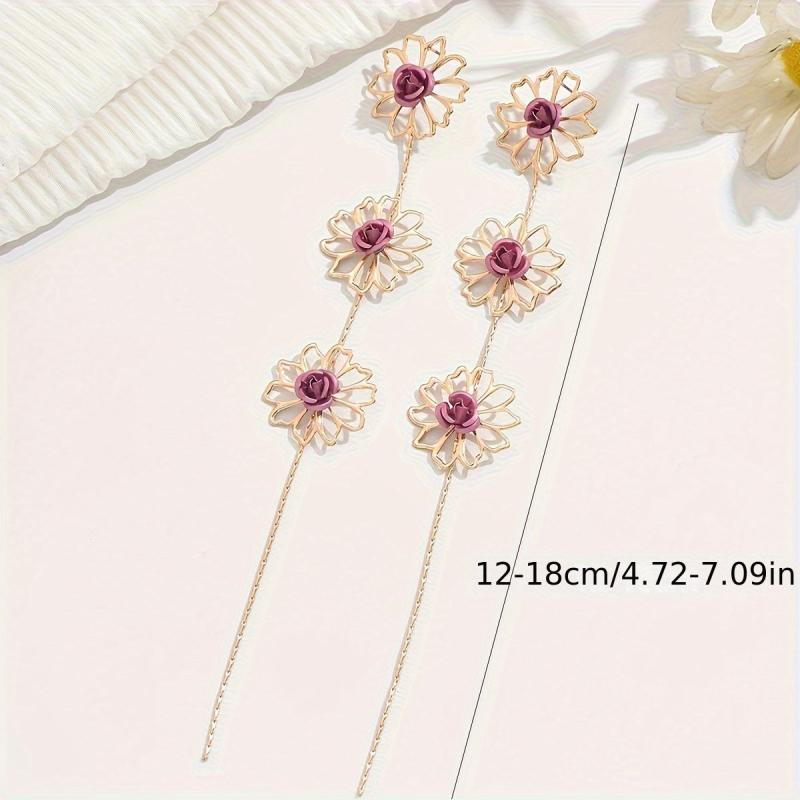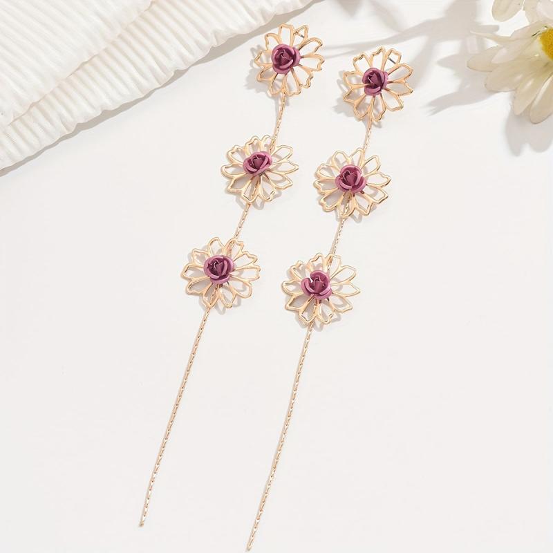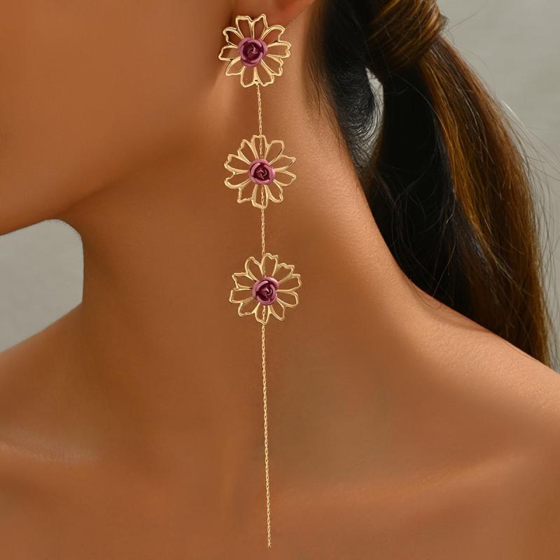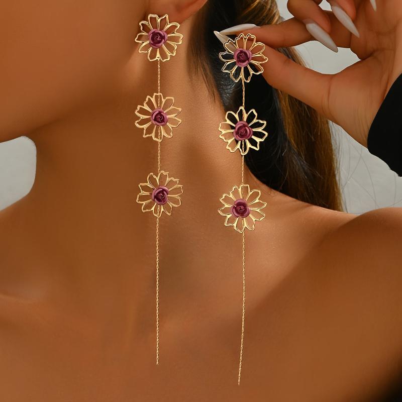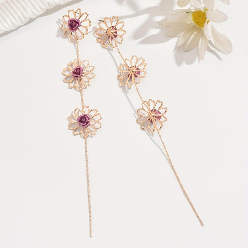 Elevate your style with these Boho Floral Tassel Drop Earrings featuring a hollow flower design and long studded posts. Made with Iron main & 316L stainless steel posts, perfect for daily wear.
