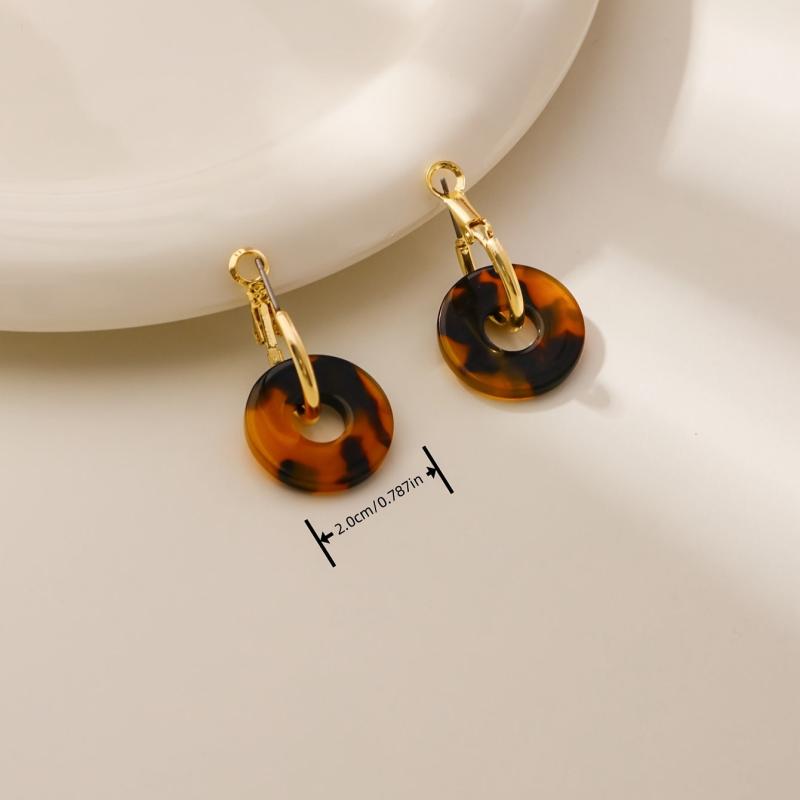 Add a touch of bohemian flair to your casual or party outfits with these lightweight round hoop earrings featuring a stylish leopard print design in golden tone metal.