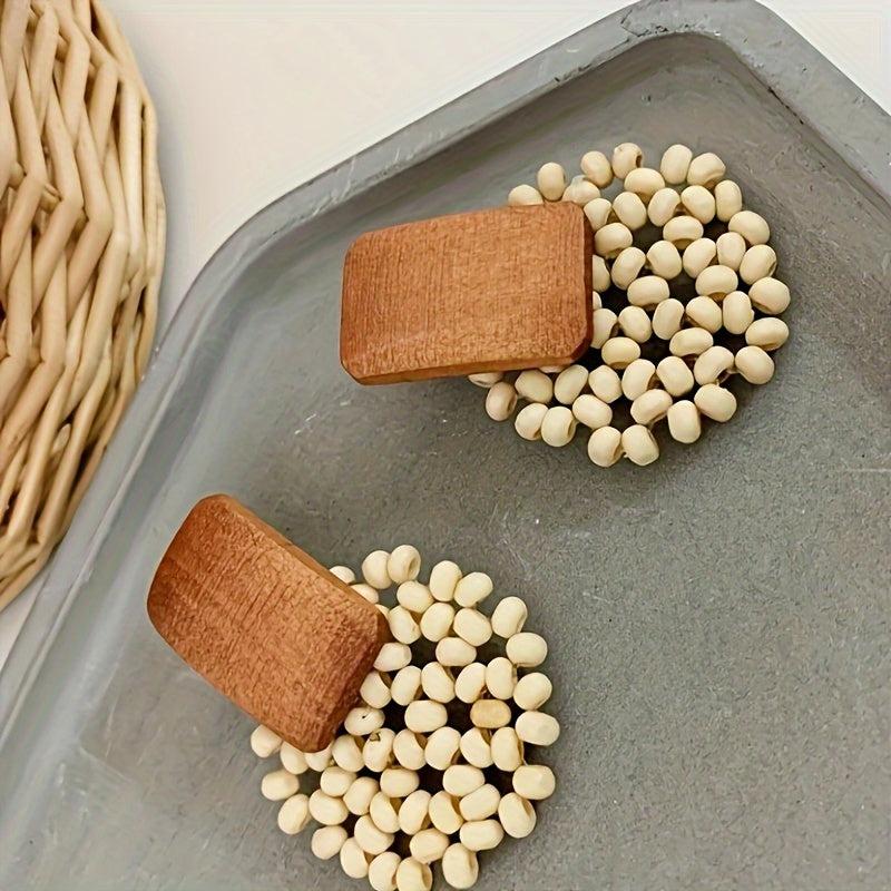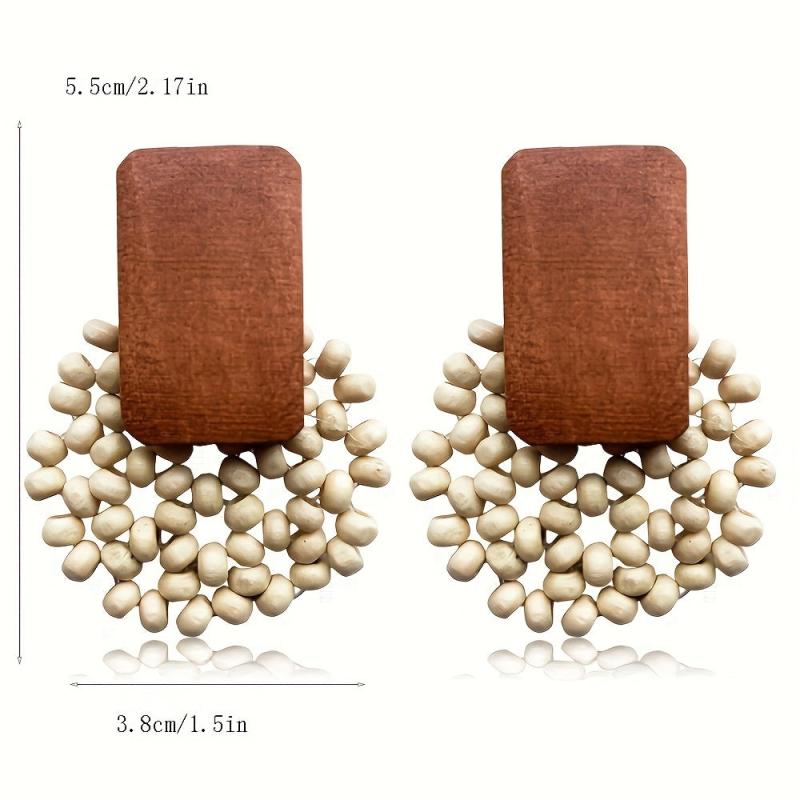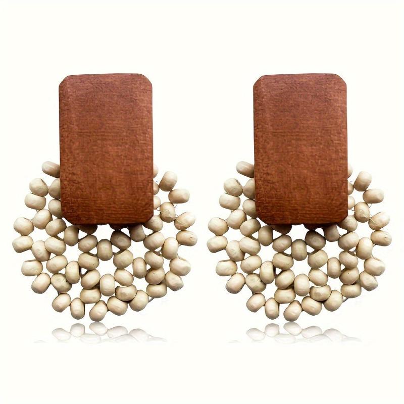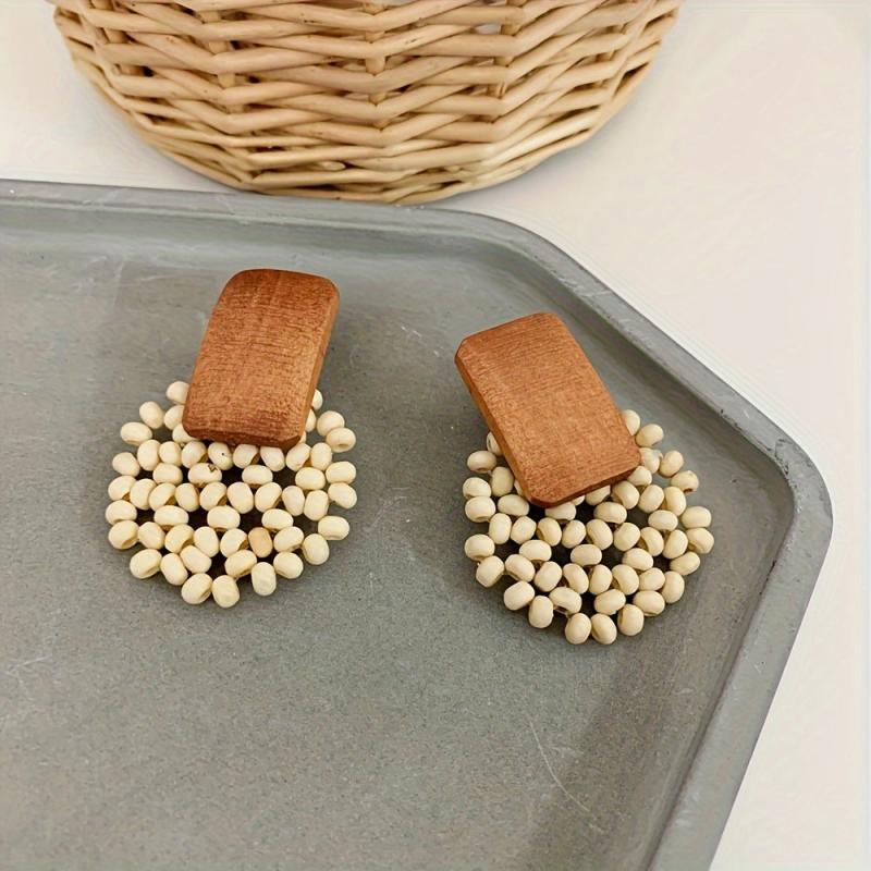 Enhance your vacation look with these retro bohemian dangle earrings made from rattan. Perfect for adding a touch of style to your outfit.