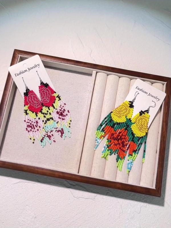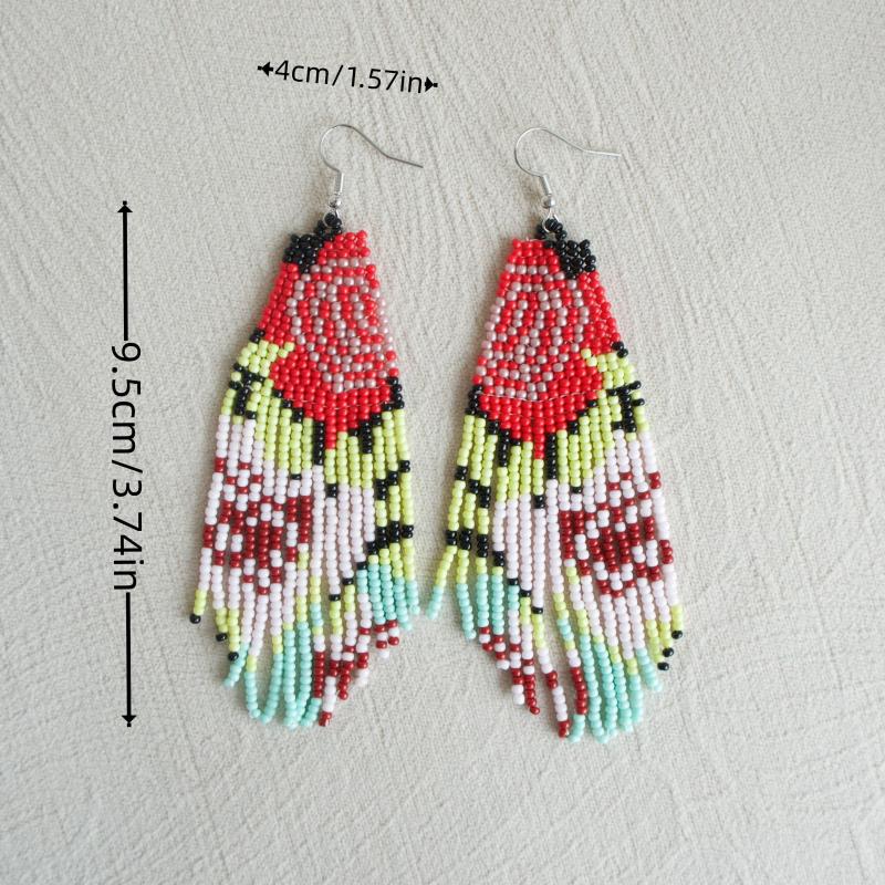 These bohemian retro earrings feature a floral design with multicolor glass beads and are a perfect accessory for casual and vacation outfits.