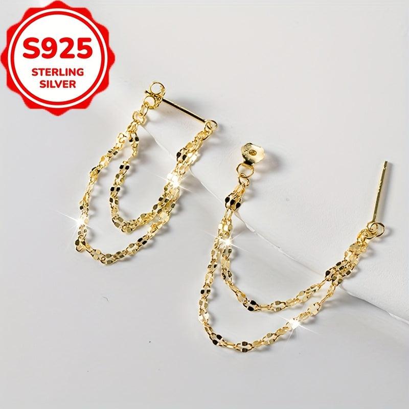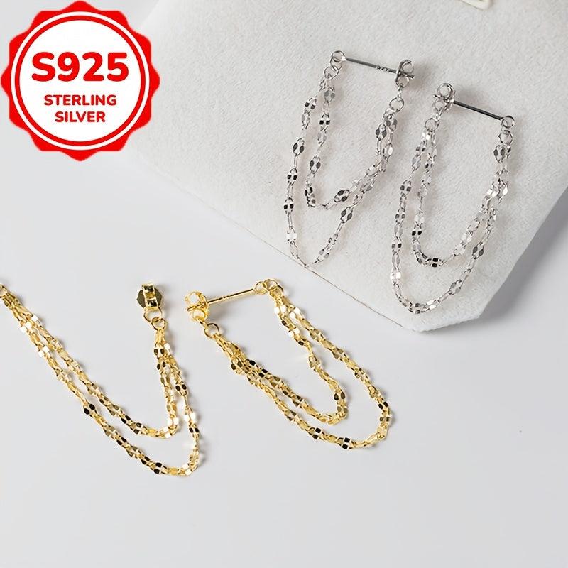 Add a touch of bohemian flair to your outfit with these dainty chain dangle earrings. Made of high-quality S925 sterling silver, they are hypoallergenic and perfect for daily wear or as a thoughtful gift for a loved one.