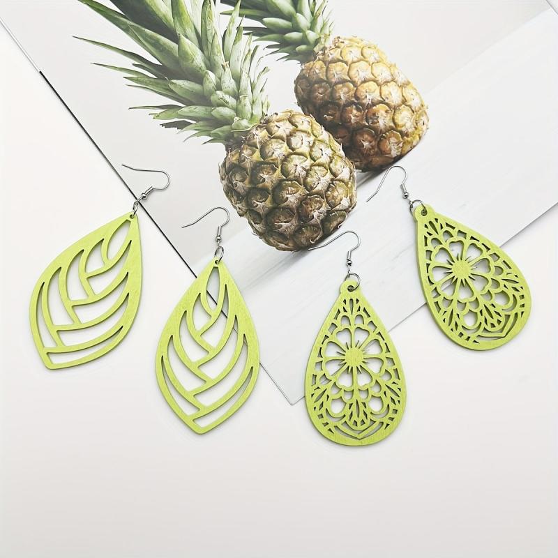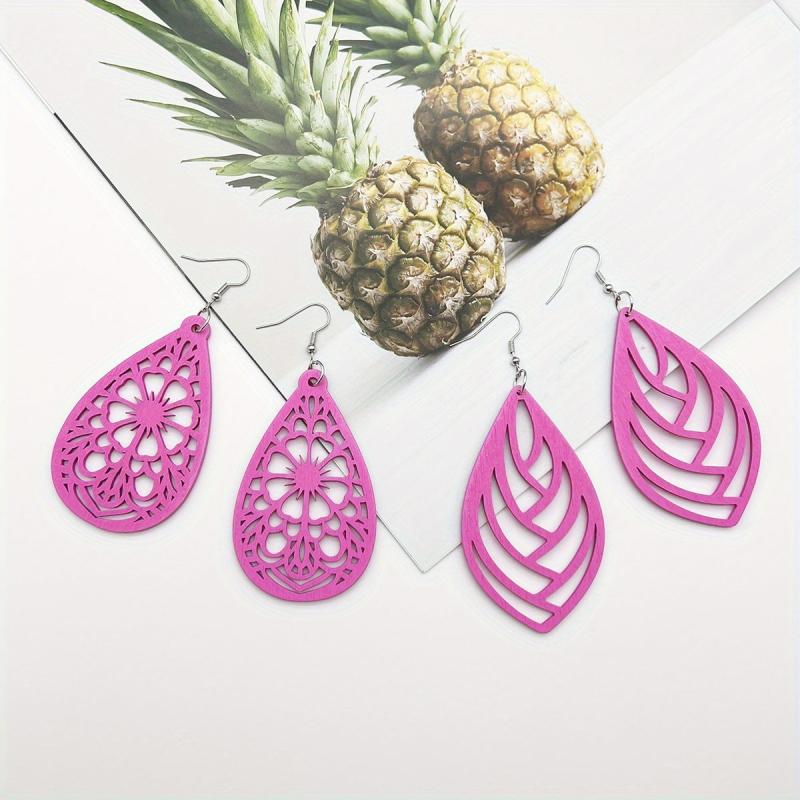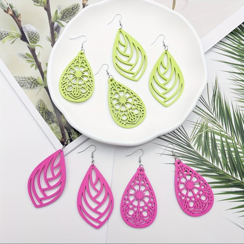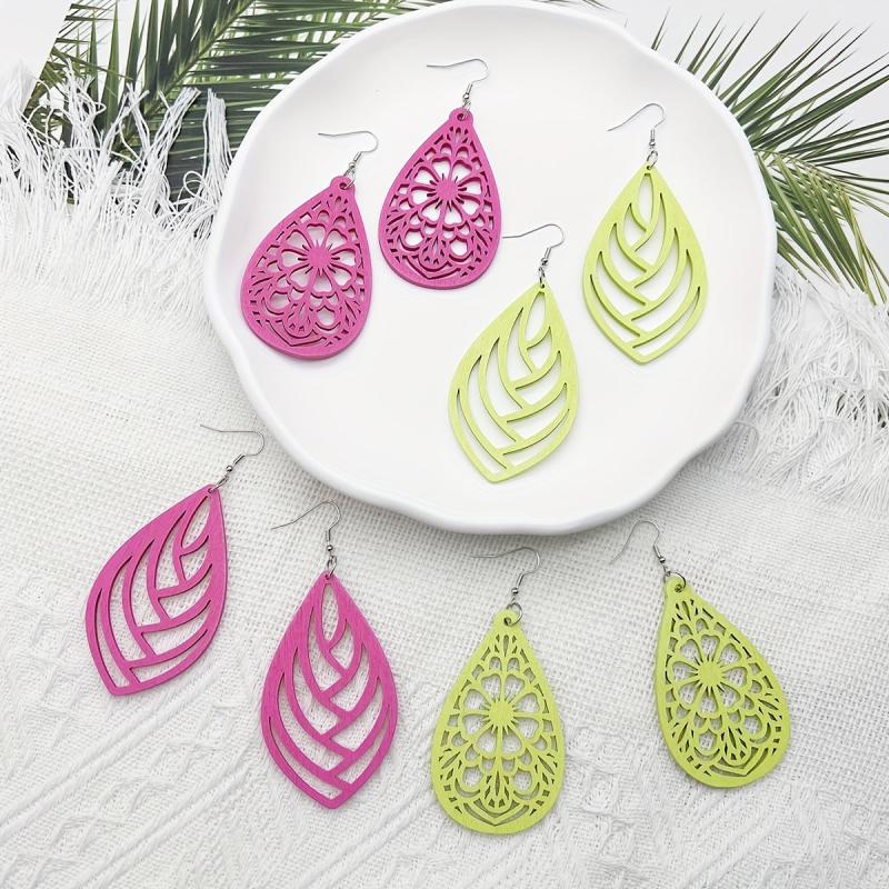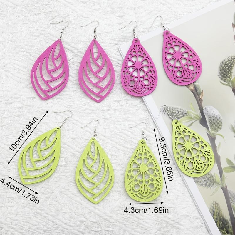 Bring a touch of bohemian style to your vacation look with these eco-friendly earrings made from recycled wood. Featuring a lightweight design with leaf and geometric shapes, these earrings are perfect for a relaxed and effortless look.