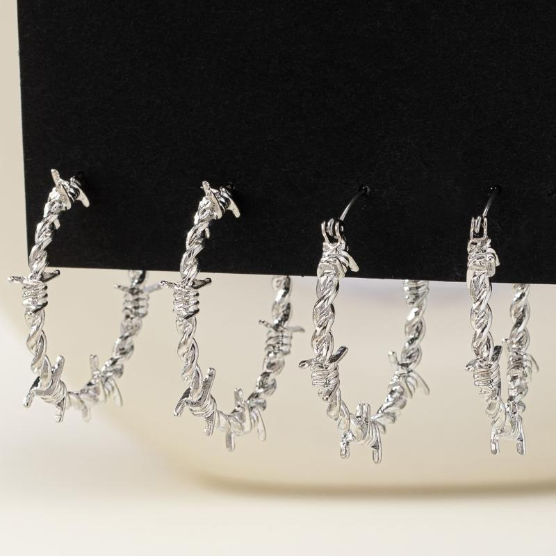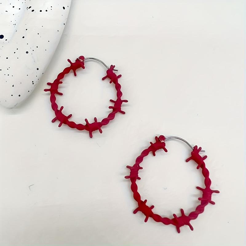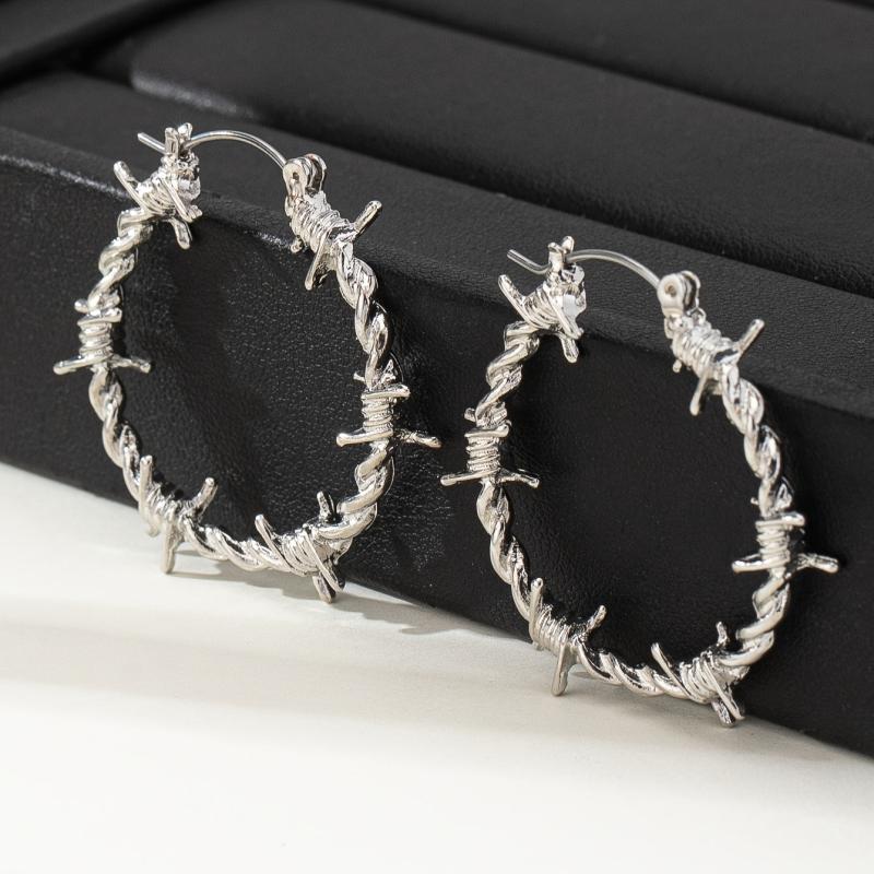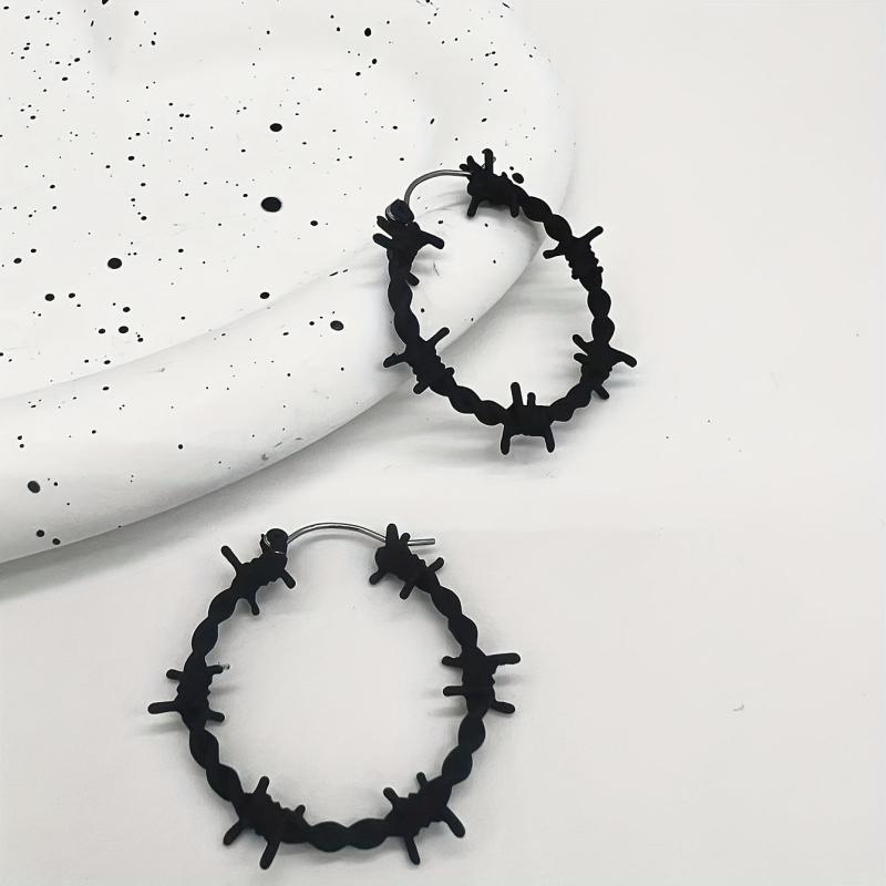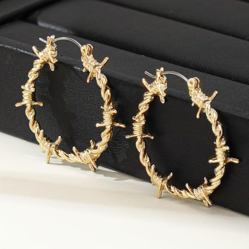 Thorny wire wrap zinc alloy hoop earrings perfect for daily wear and parties.