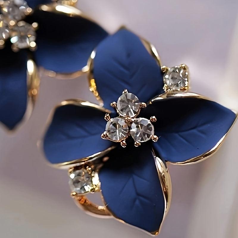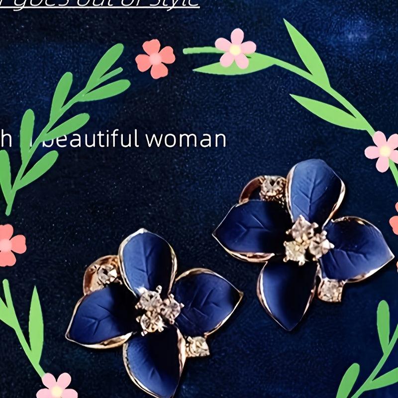 These Camellia Crystal Stud Earrings feature a 925 silvery post made of zinc alloy, suitable for both everyday and party wear.