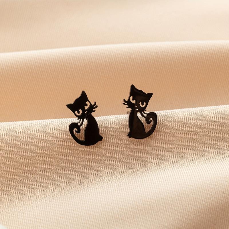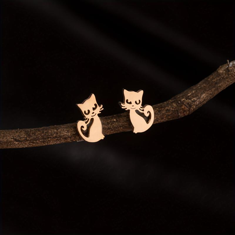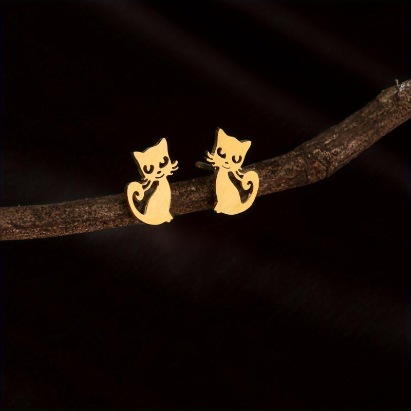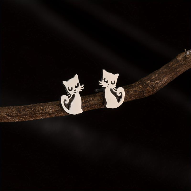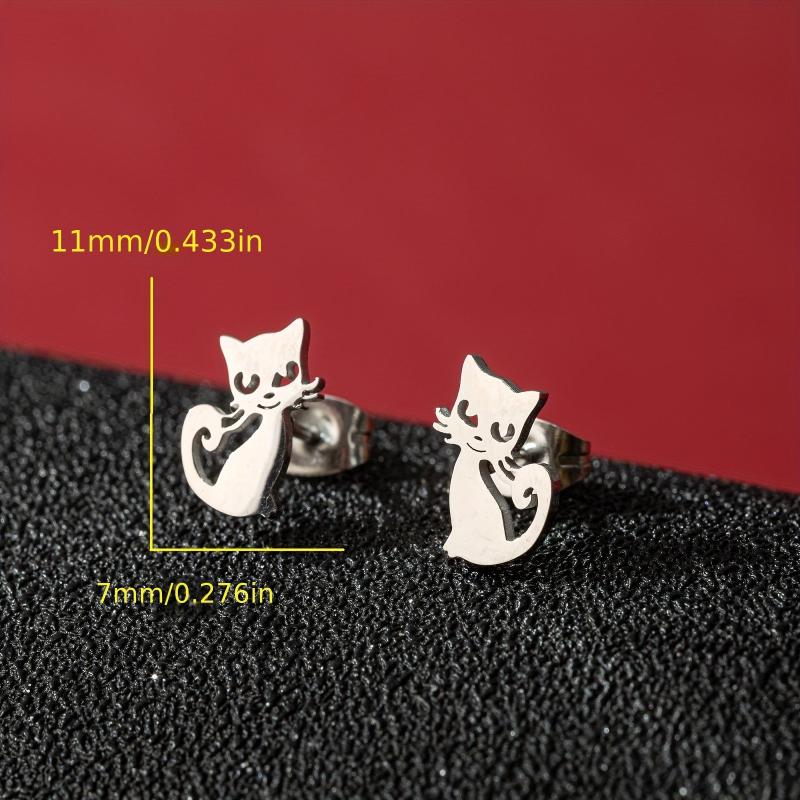 Adorable Cartoon Cat Small Stud Earrings made from durable stainless steel, perfect for pet lovers.