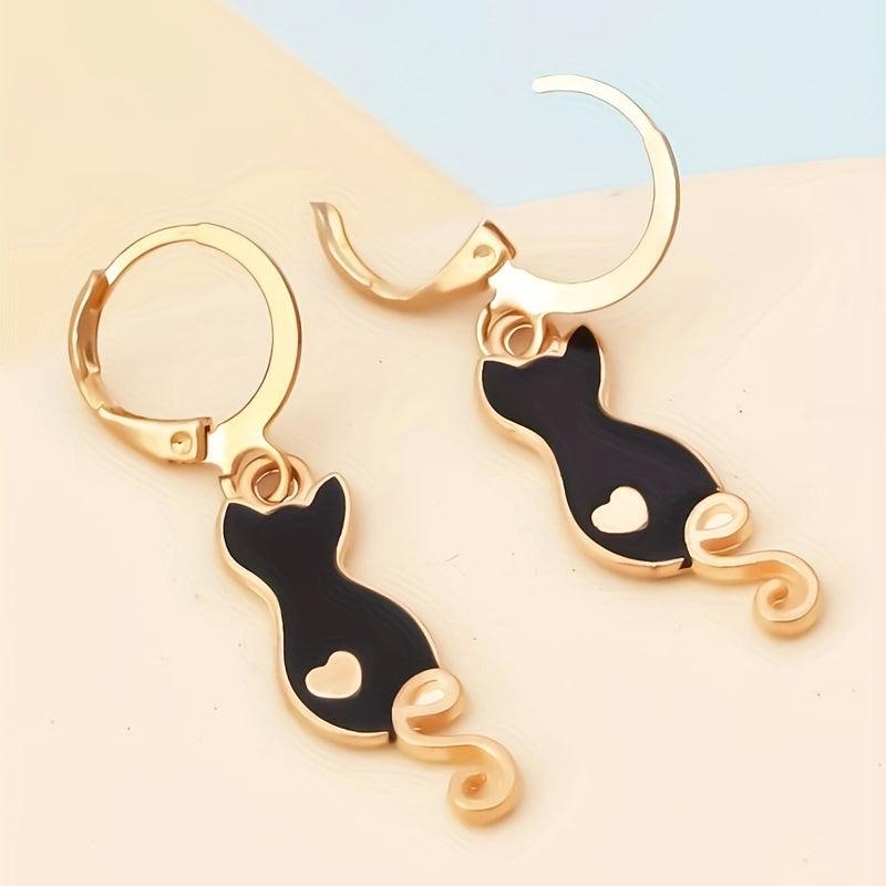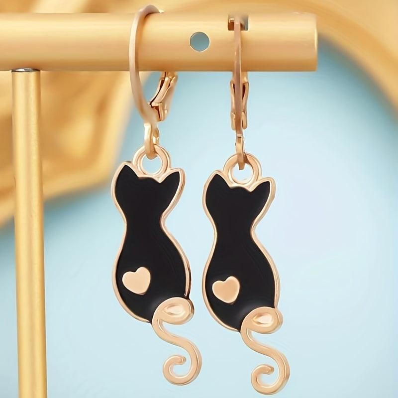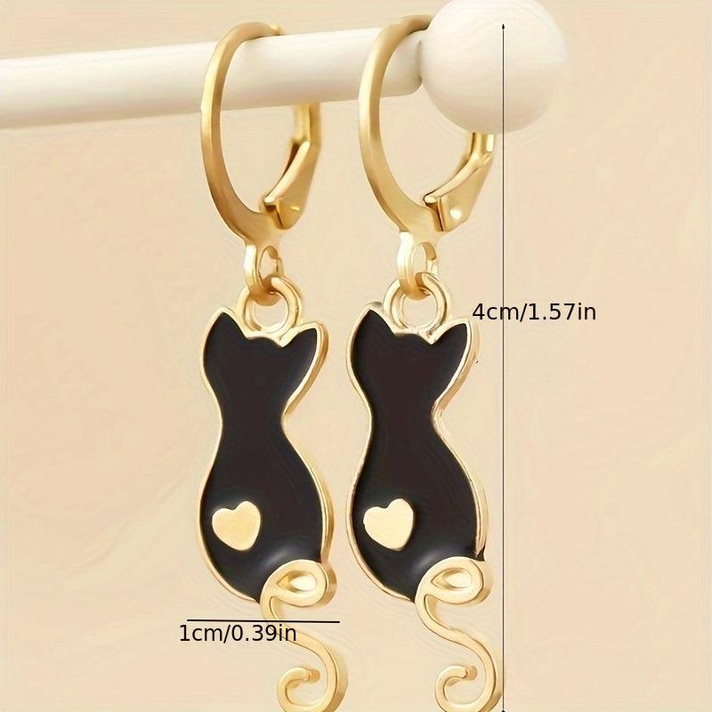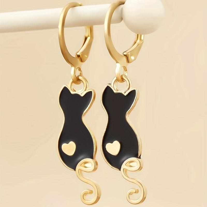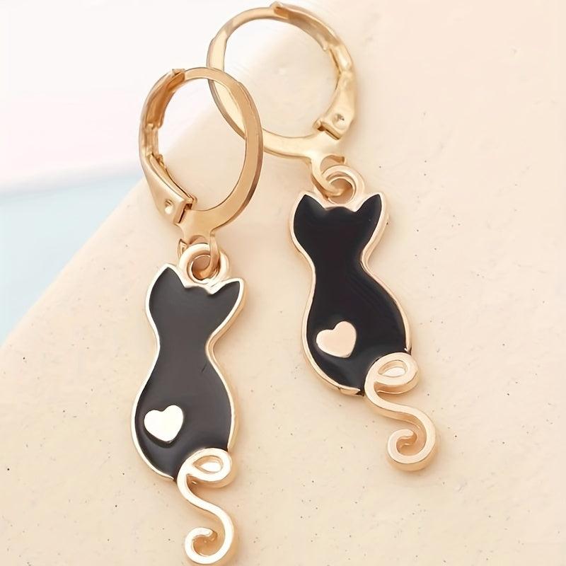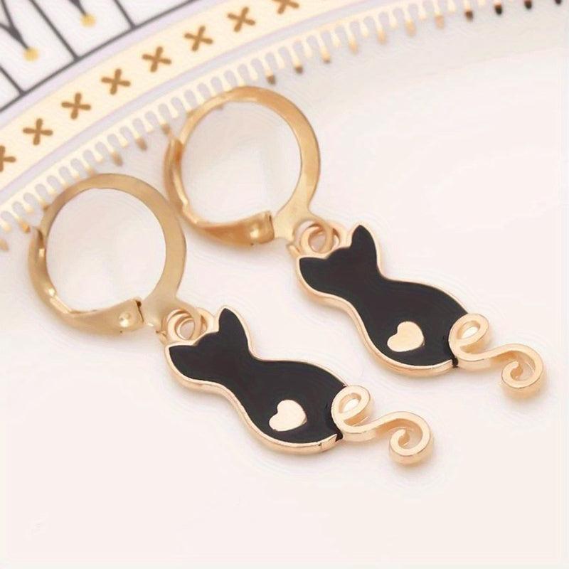 Get charmed by these adorable cartoon drop cat earrings that add a playful touch to your outfit.