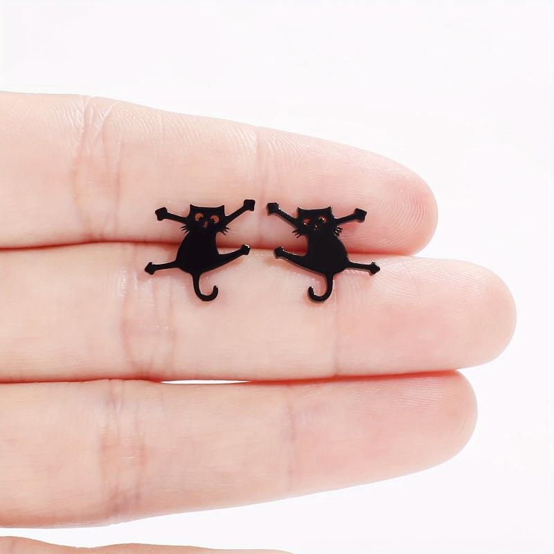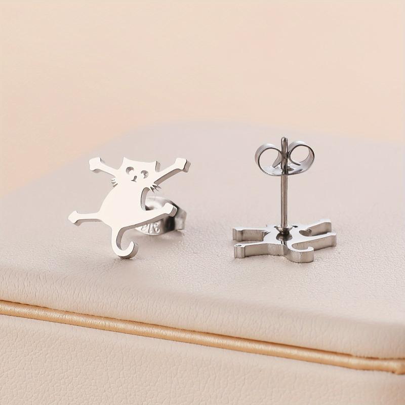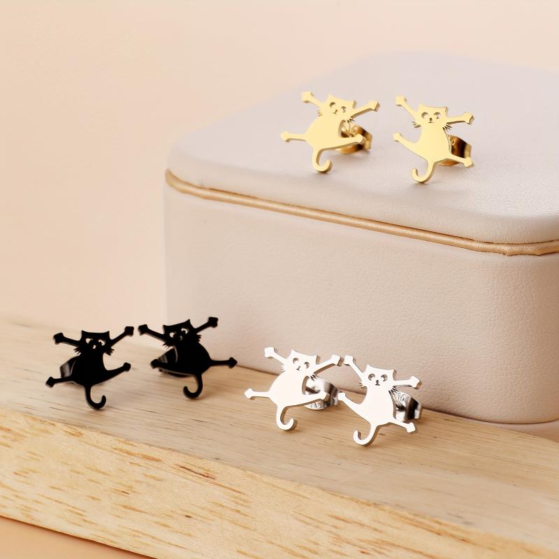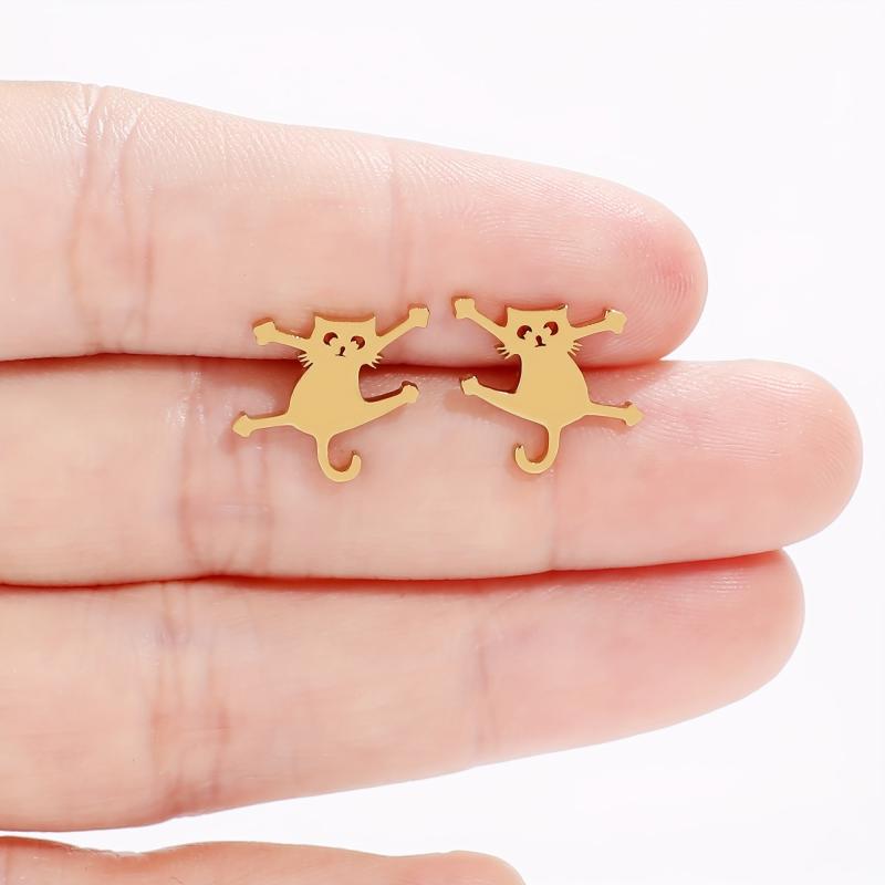 These cat stud earrings are made of 316L stainless steel, ensuring durability and hypoallergenic properties. Perfect for casual attire, these earrings add a touch of feline charm to your look.