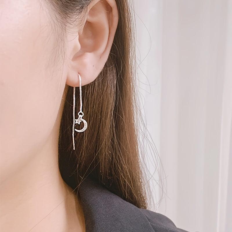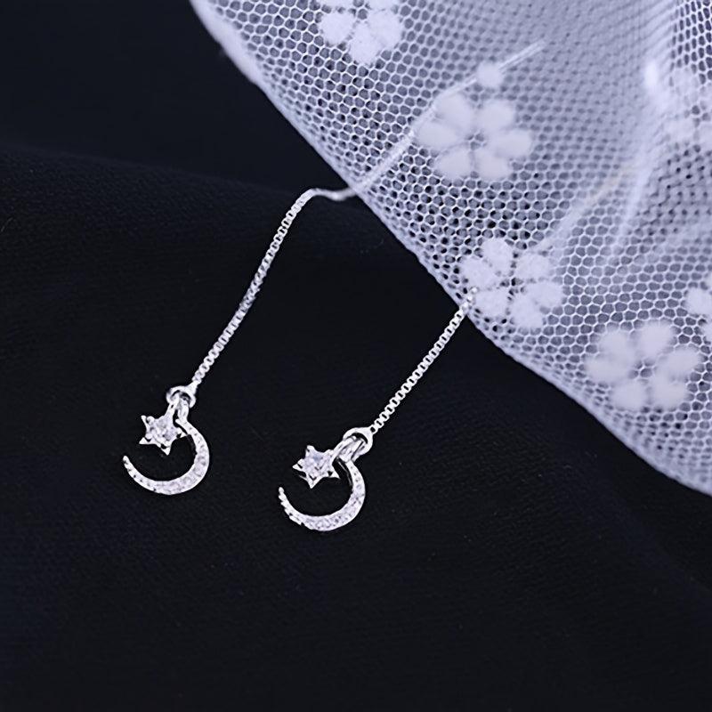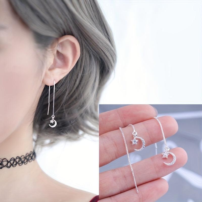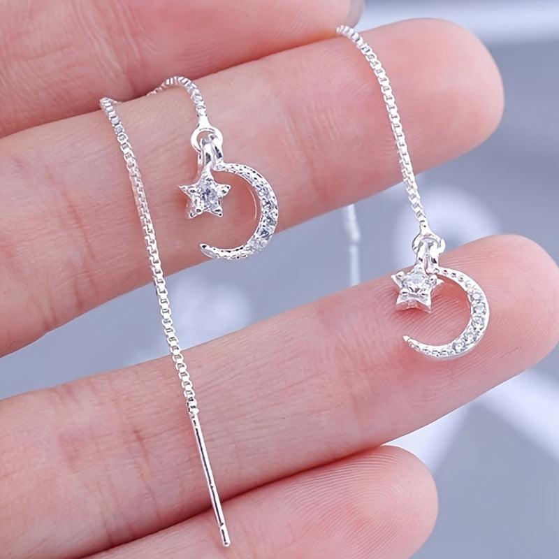 Elegant earrings featuring moon and star design with synthetic zirconia stones in April birthstone, perfect for everyday wear or special occasions.