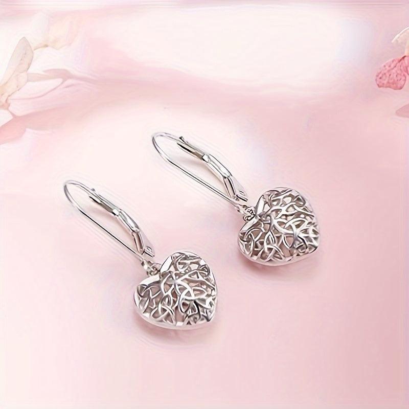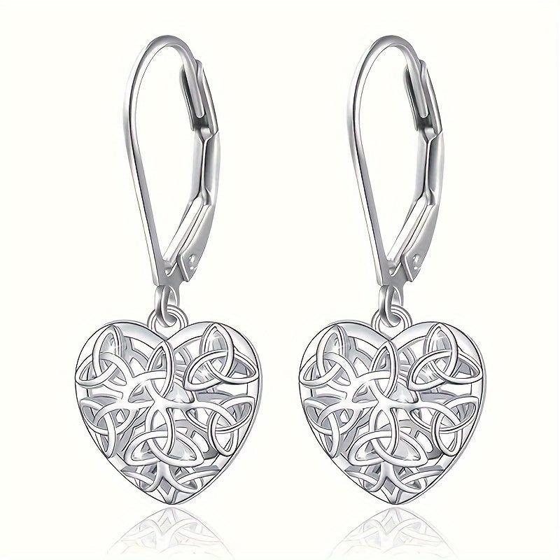 These elegant hoop earrings feature a creative Celtic knot design with a hollow heart pendant, perfect for engagement, proposal, and wedding occasions.