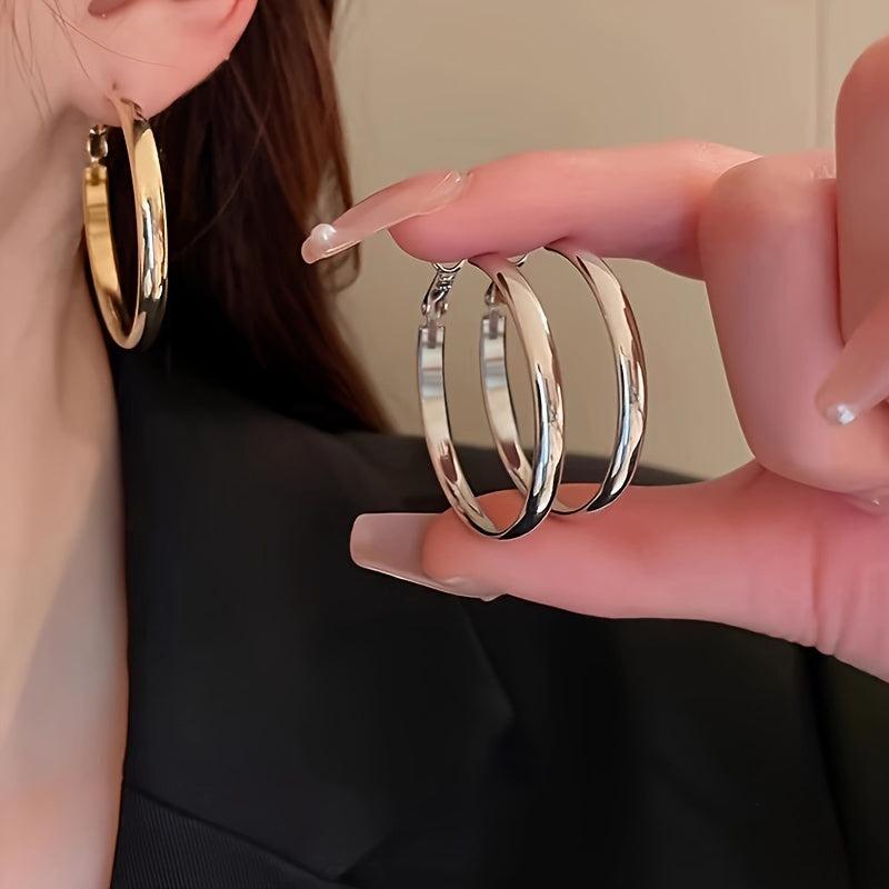 These hoop earrings are a perfect blend of style and minimalism. The silvery finish adds a touch of elegance to any outfit.