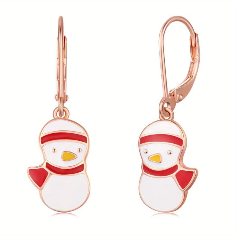 These Christmas snowman earrings are made of 925 sterling silver with a rose golden snowman pendant. The perfect festive accessory!