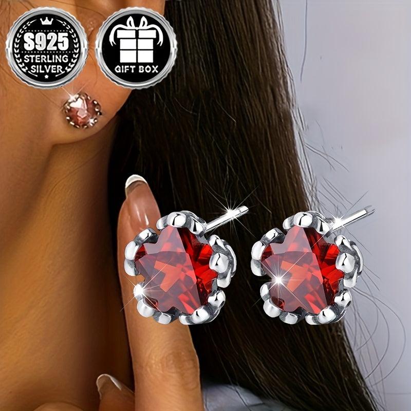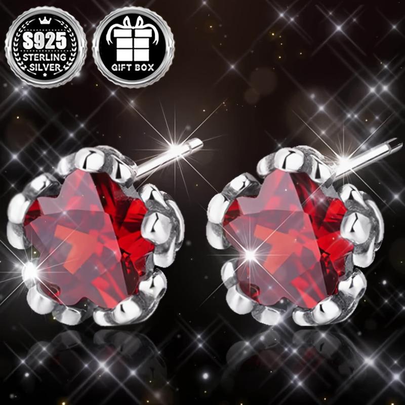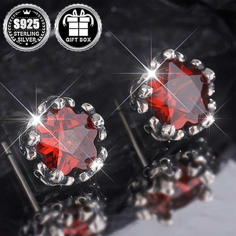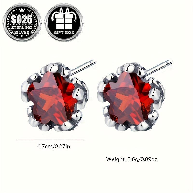 These stylish earrings feature classic red five-pointed star studs made of 925 silver. Total weight is 2.6g. The packaging is perfect for gifting and the earrings are suitable for daily wear, parties, and more.