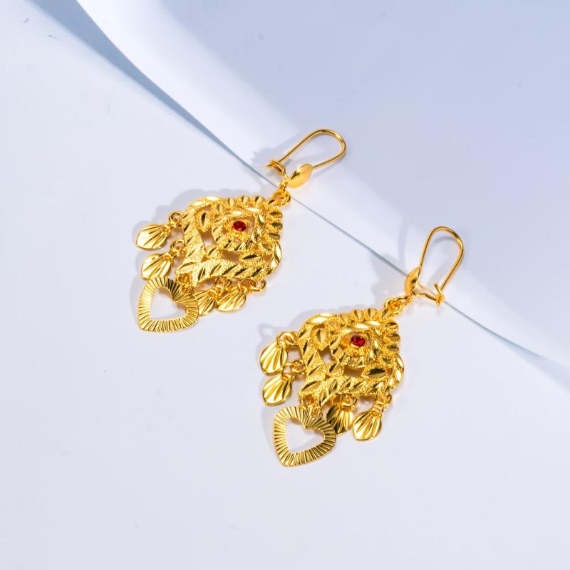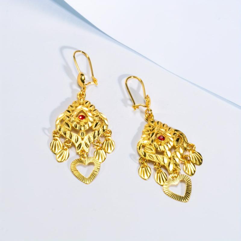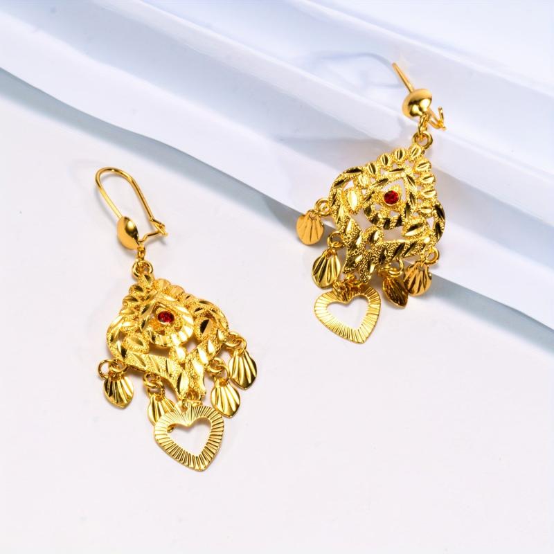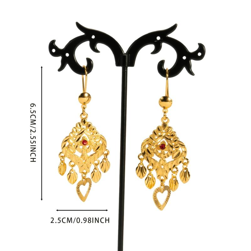 Elevate your style with these fashionable dangle earrings featuring synthetic gemstones. Made of high-quality 24K golden plated copper, these earrings are perfect for all occasions.