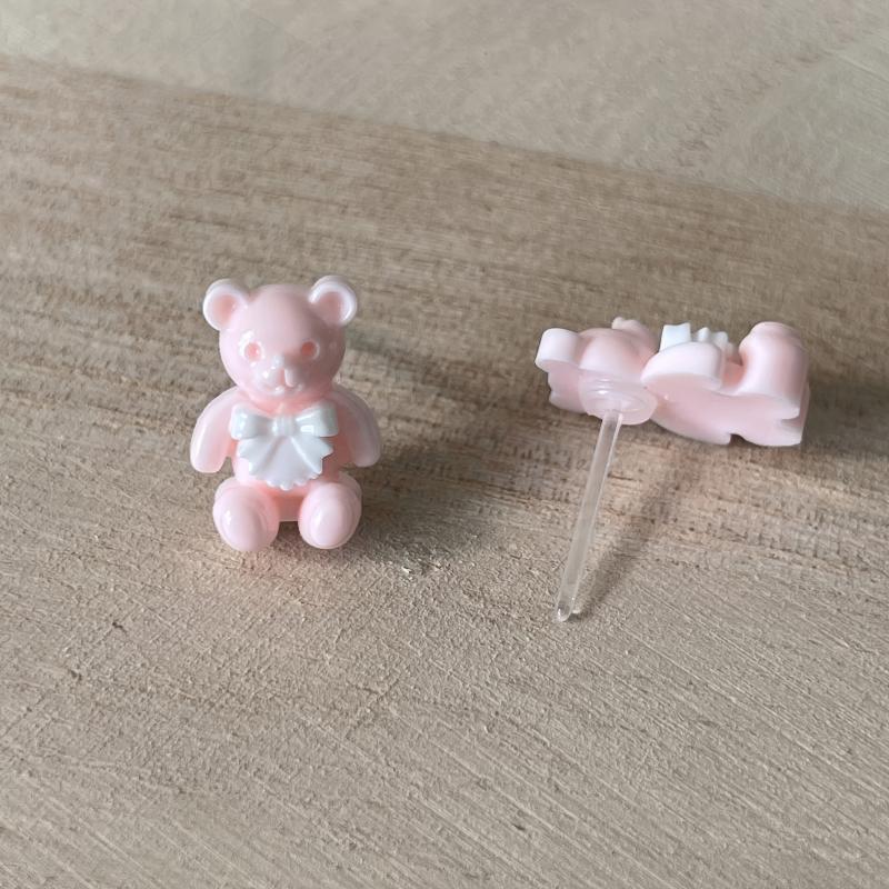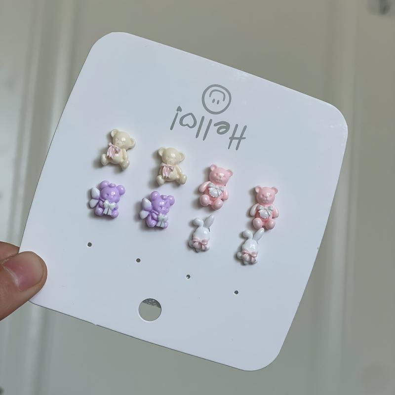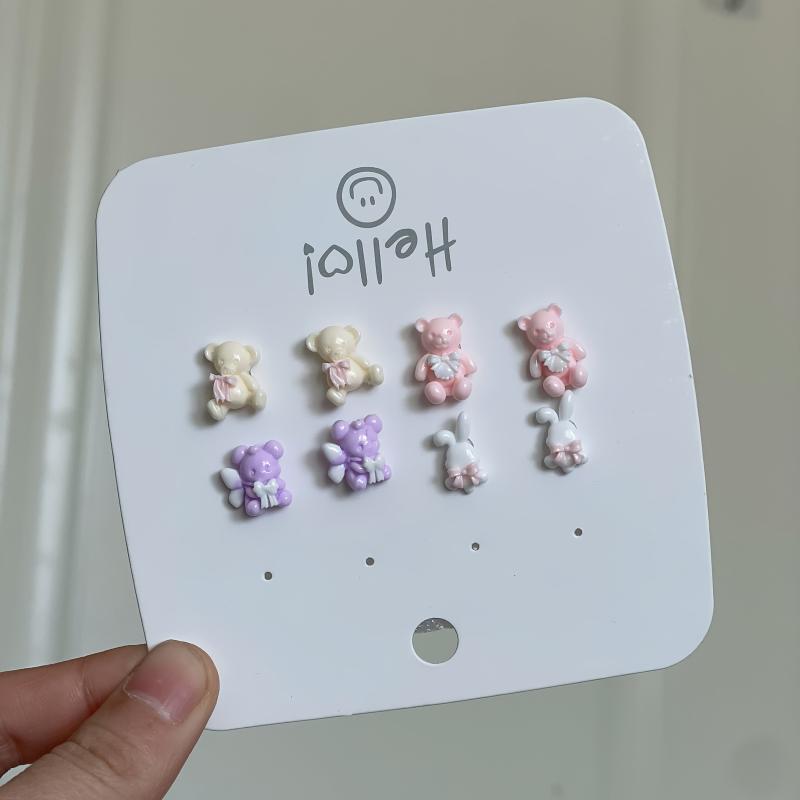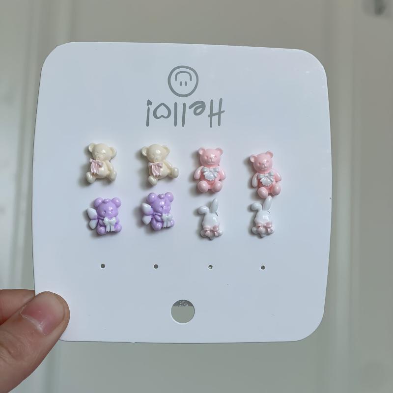 Adorable resin bear and bunny earrings with vibrant patterns, perfect for everyday wear or as a gift for someone special.