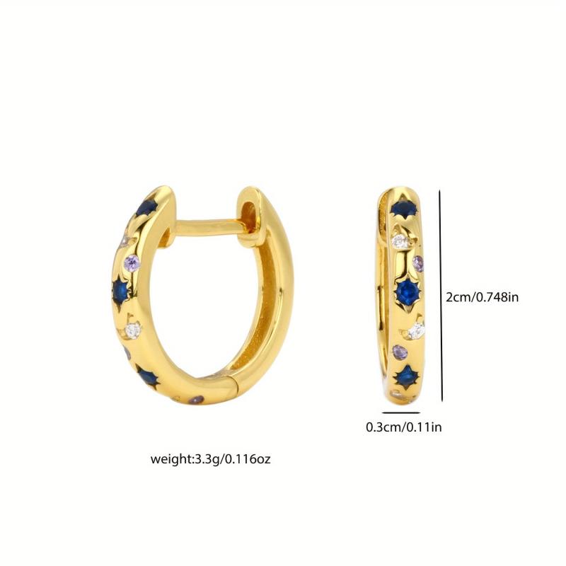 Add a touch of glamour to any outfit with these hoop earrings featuring colorful synthetic cubic zirconia stars and moon crescents. Perfect for daily wear, parties, and weddings.
