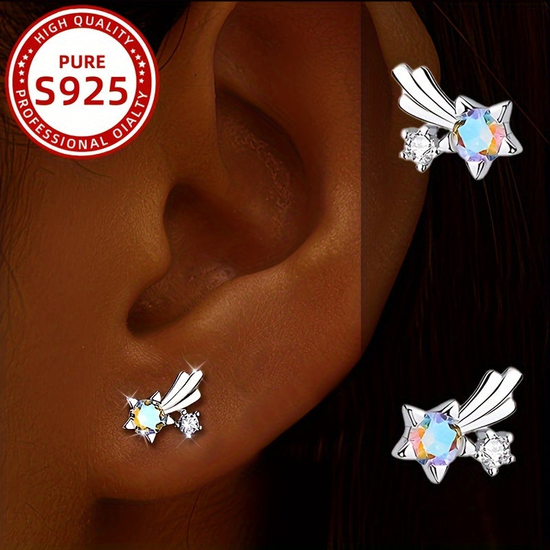 Add a touch of sparkle to your look with these colorful flash five-point star stud earrings. Made of 925 pure silver, these earrings are perfect for daily wear or vacation outfits.