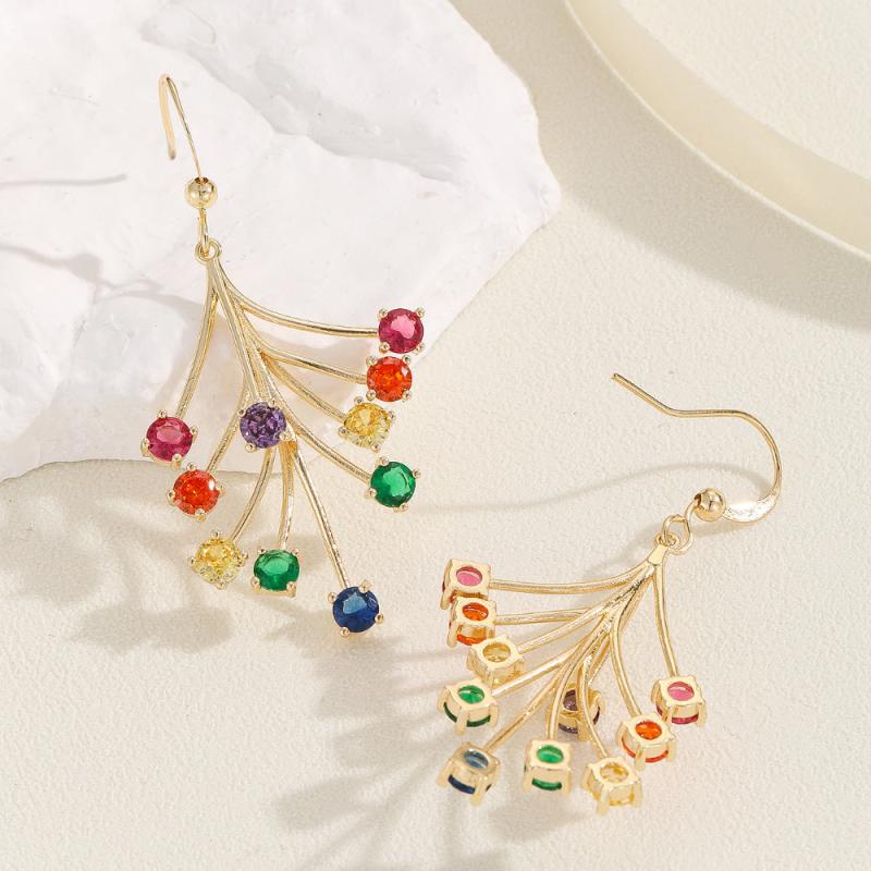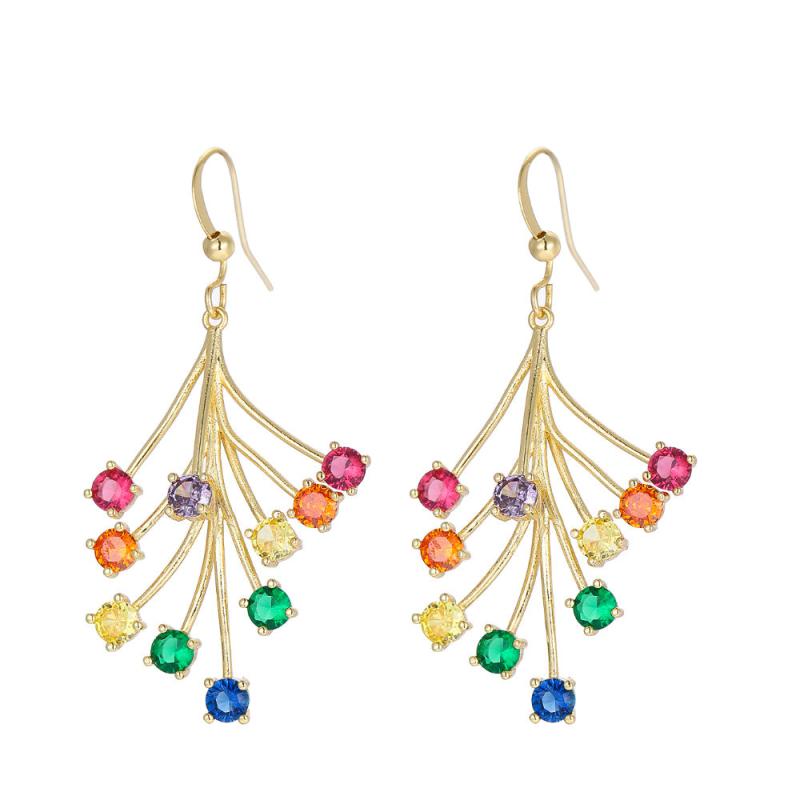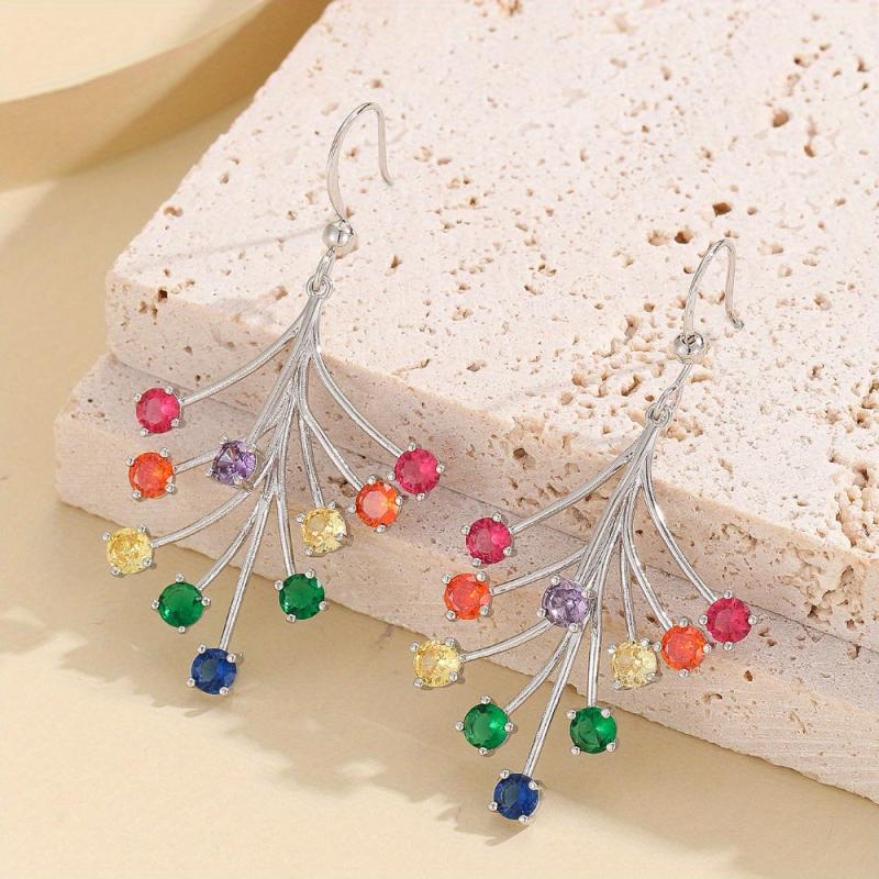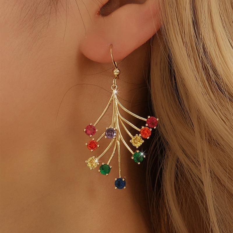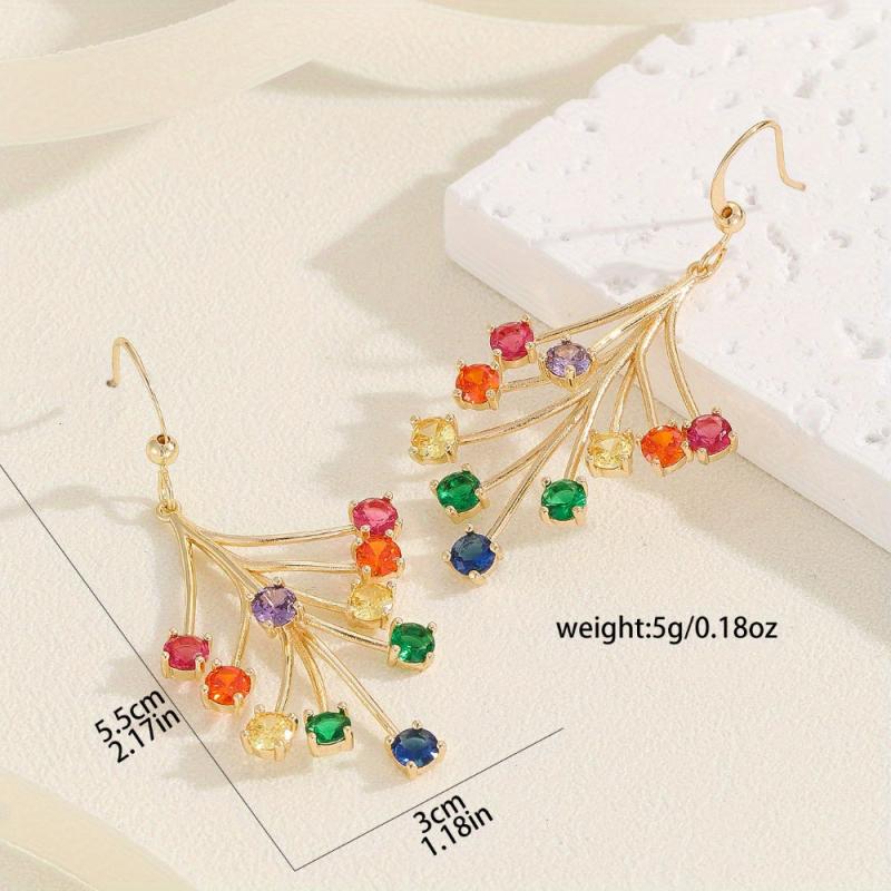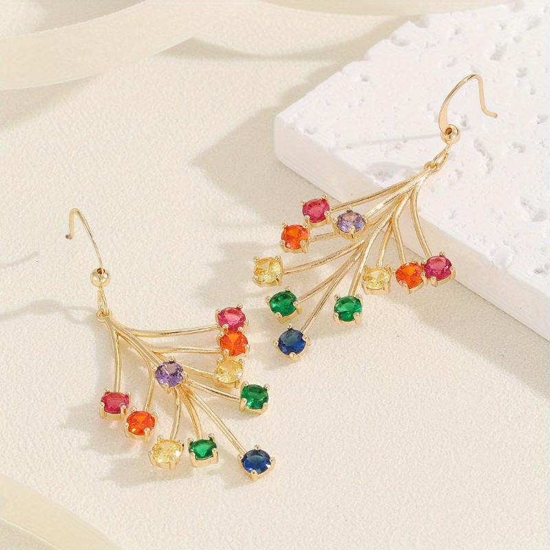 Elevate your style with these vibrant women's dangle earrings featuring synthetic gemstone accents. Crafted from 18K golden plated copper, these earrings are perfect for Valentine's Day and any special occasion.