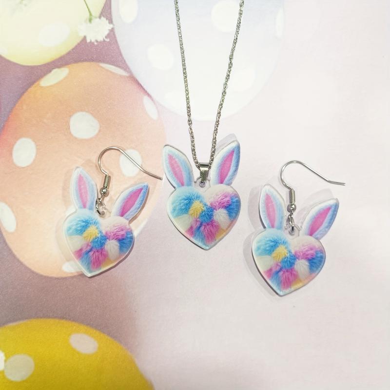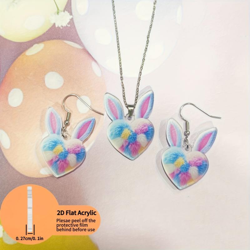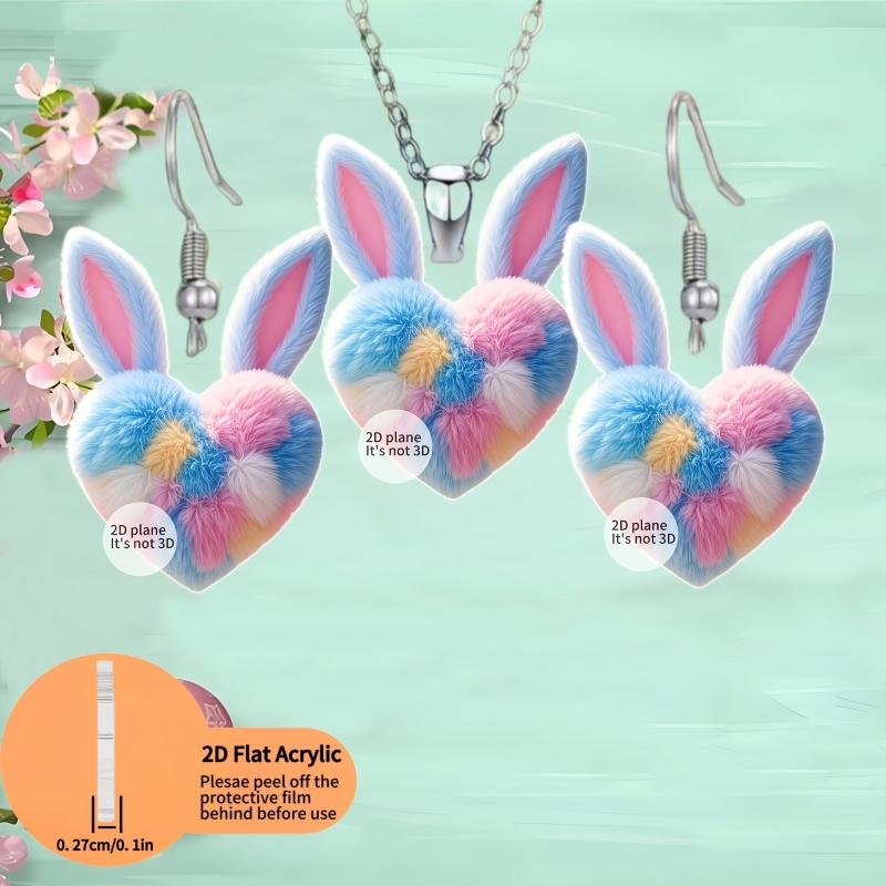 Elevate your everyday style with this 3-piece set featuring double-sided printed colorful heart and rabbit design. Lightweight and durable, perfect for year-round wear.