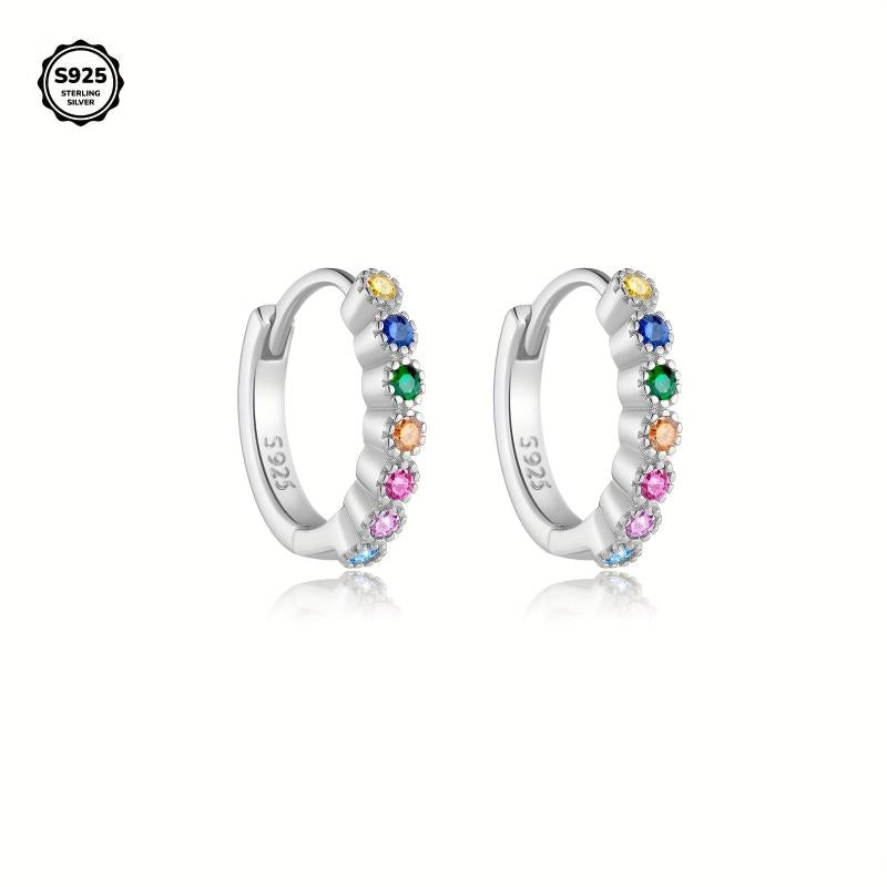 Add a pop of color to your look with these minimalist hoop earrings featuring synthetic zirconia accents. Perfect for everyday wear or as a thoughtful gift.