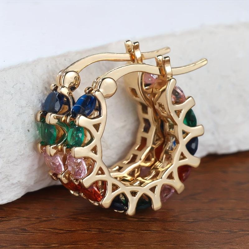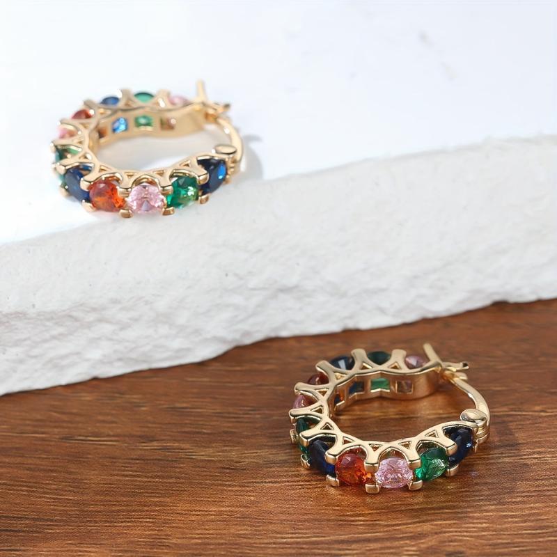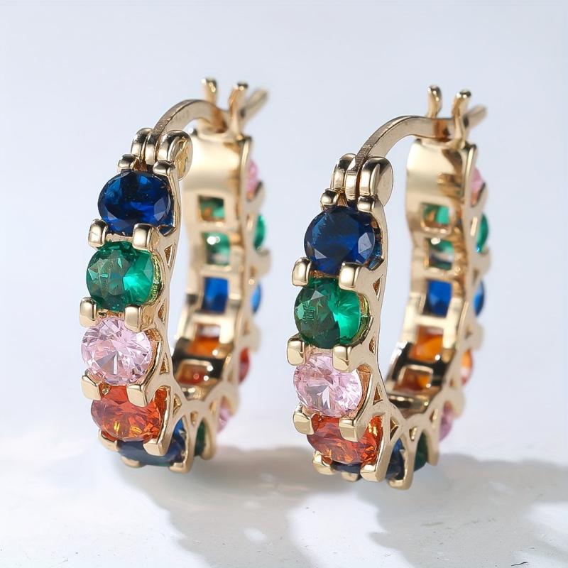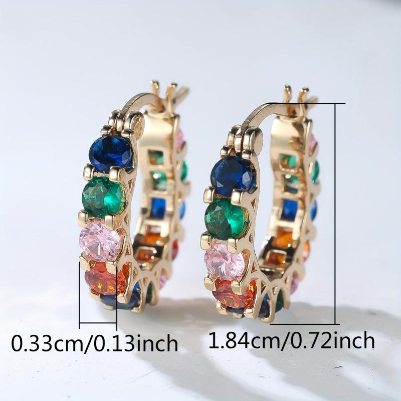 Add a pop of color and sparkle to any outfit with these round synthetic zirconia earrings. Perfect for parties and special occasions.