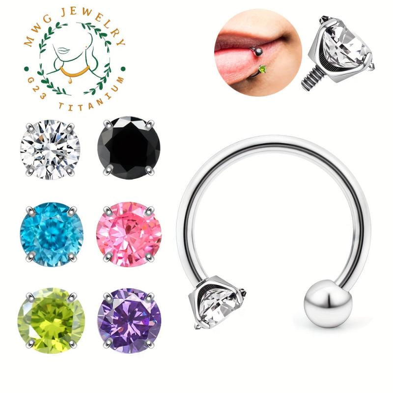 Add a pop of colorful sparkle to your body piercings with this titanium hoop featuring vibrant zirconia stones. Perfect for ear cartilage, nose, and lip piercings.