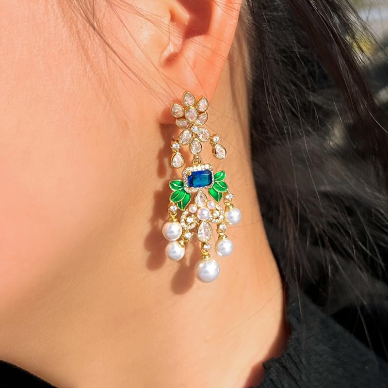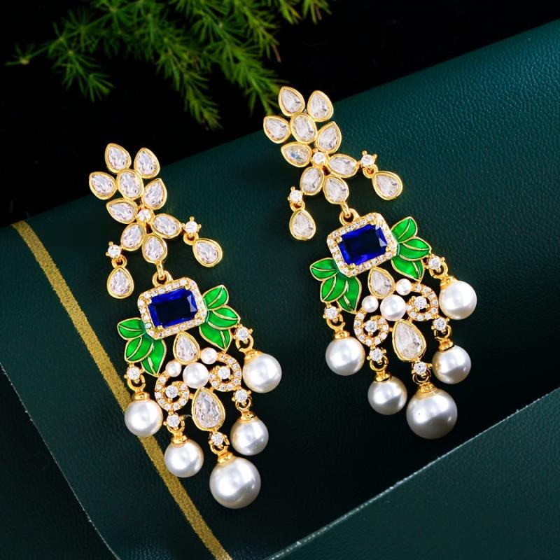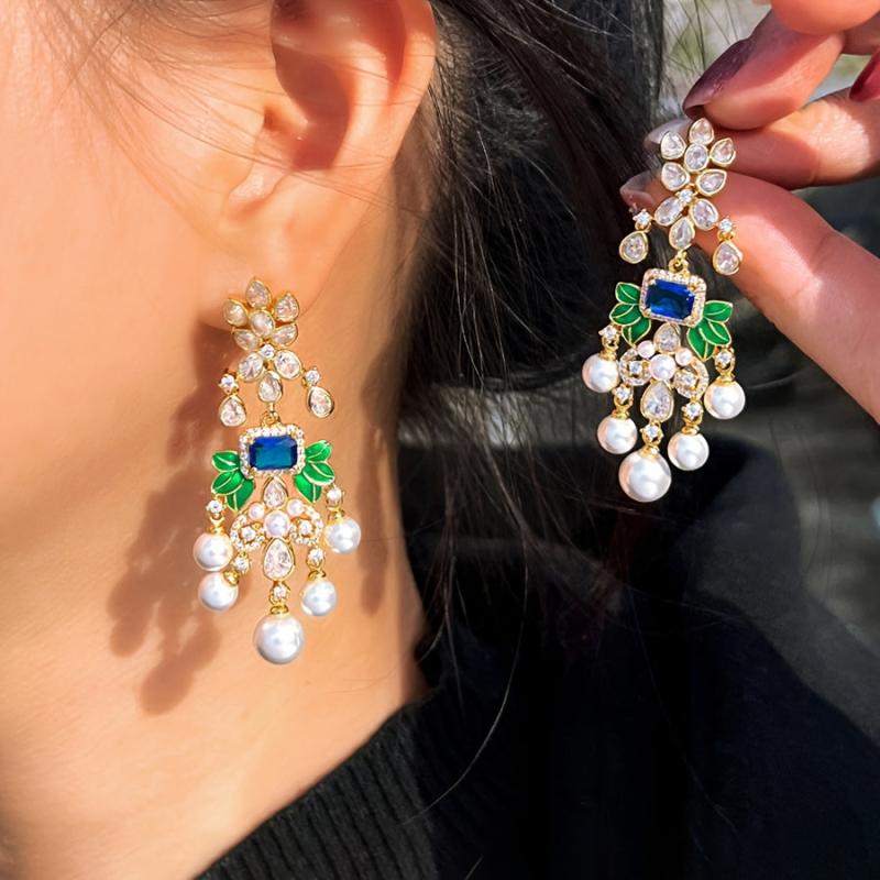 Elevate your look with these colorful zirconia and artificial pearl dangle earrings, perfect for banquet style events. These earrings are a stunning addition to any outfit.