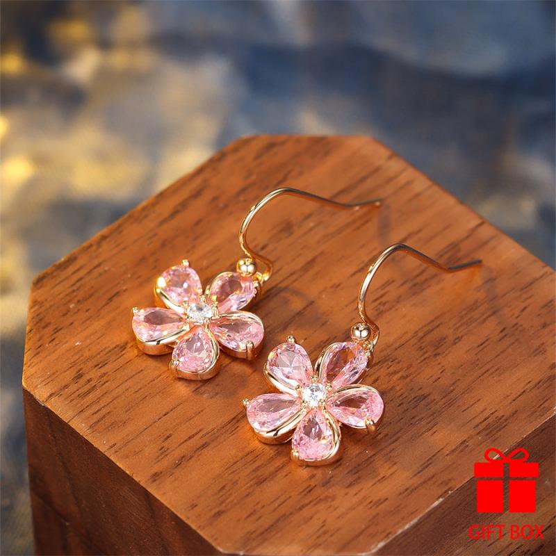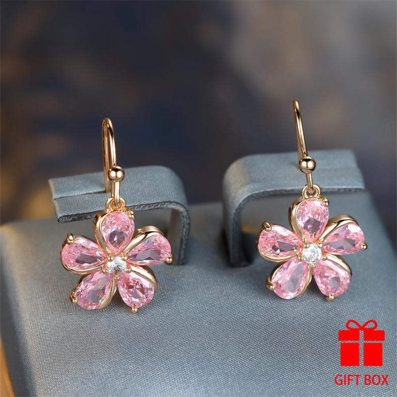 Beautiful copper dangle earrings featuring pink zirconia, perfect as a Valentine's Day gift or for someone born in December.