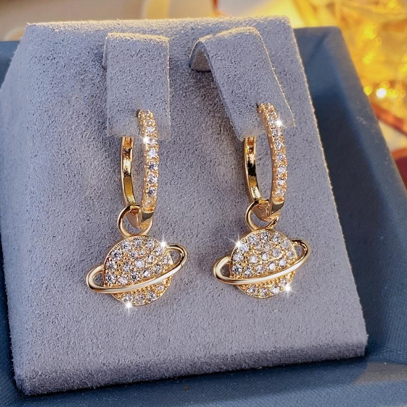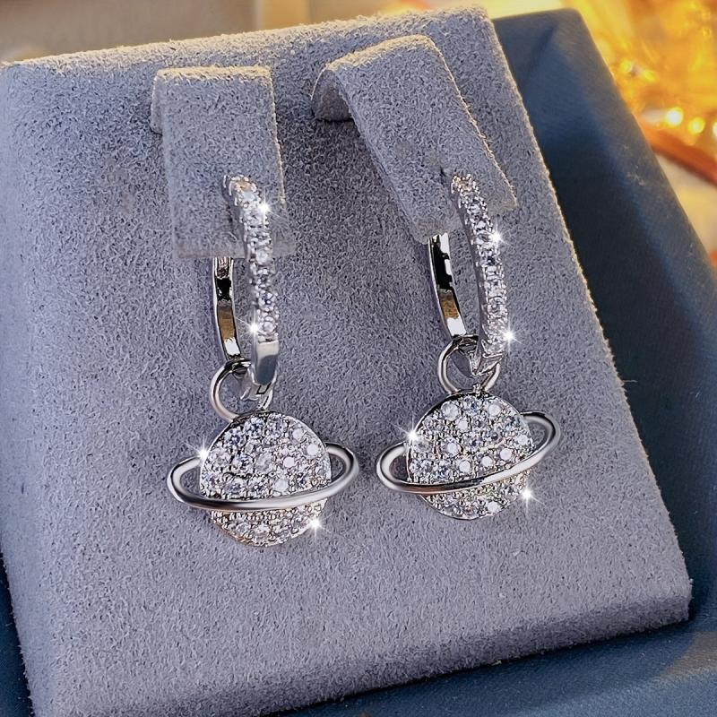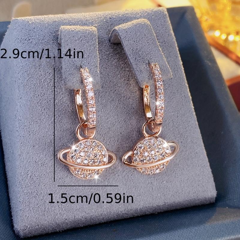 Elevate your style with these fashionable drop earrings featuring a planet design. Made of copper with synthetic cubic zirconia, these earrings are perfect for daily wear or special occasions.