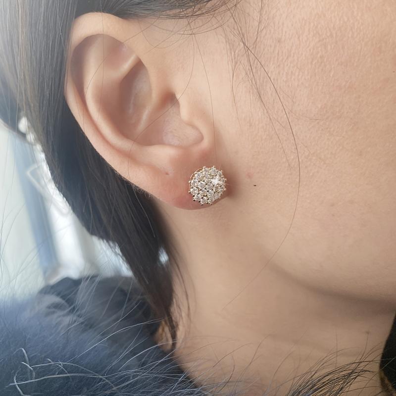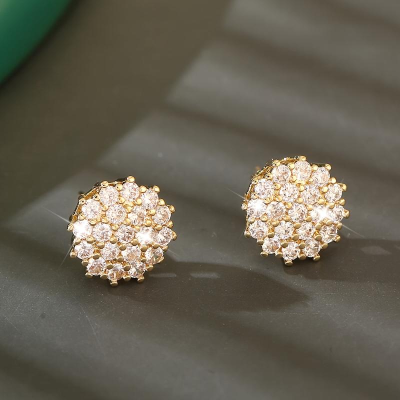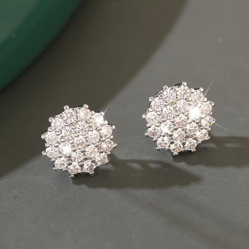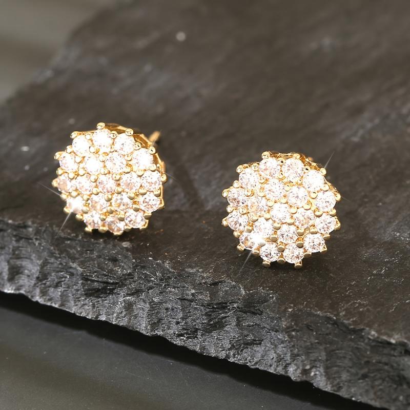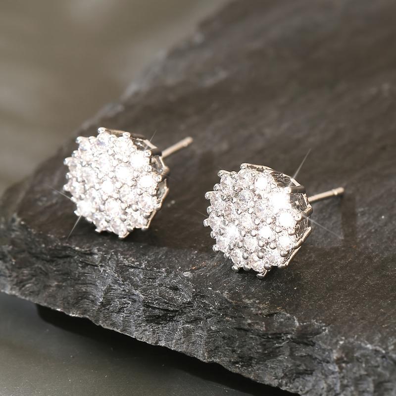 Impress your girlfriend with these stunning copper inlaid zirconia earrings. Perfect for a date night, these elegant flower-shaped earrings are sure to add a touch of glamour to her outfit.