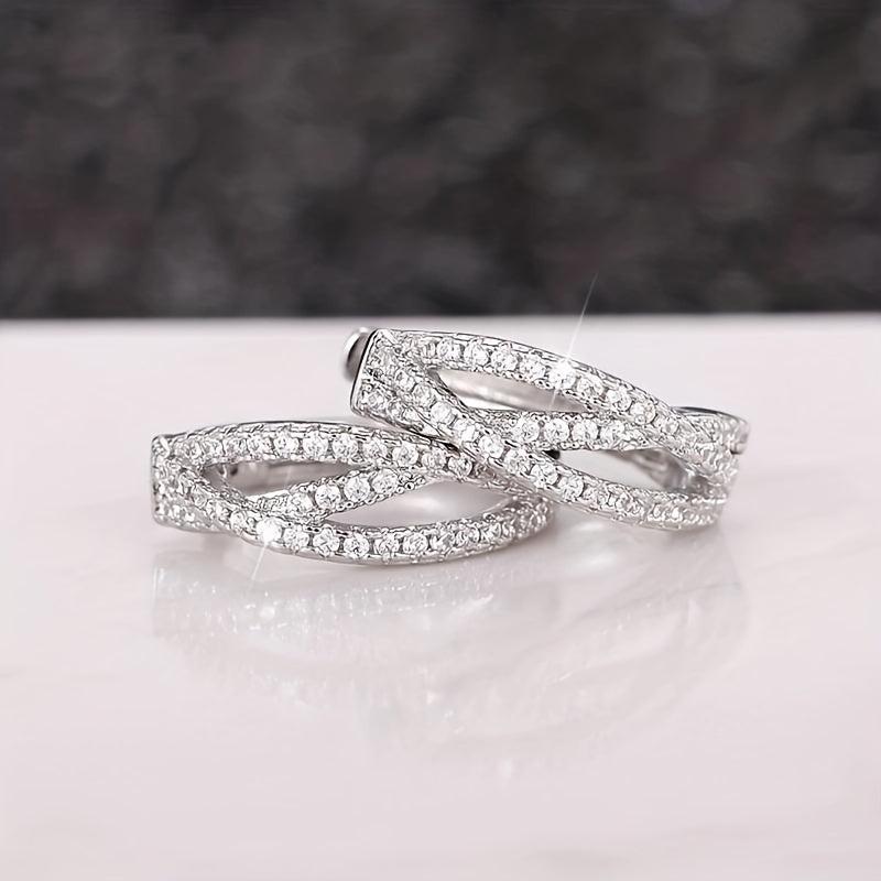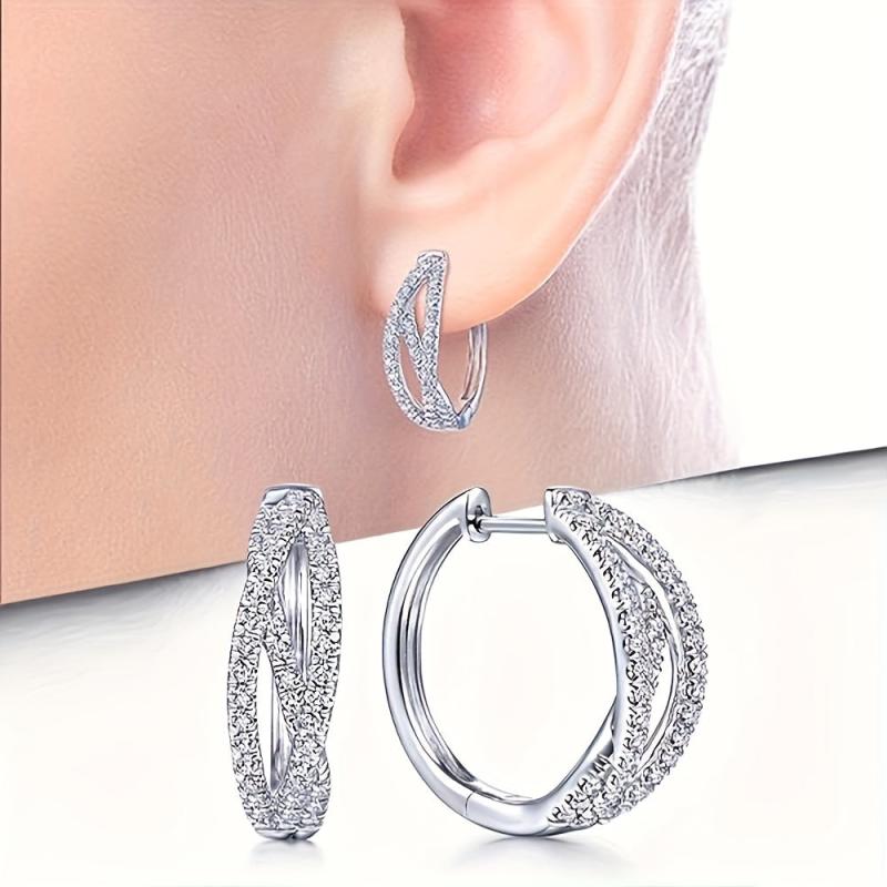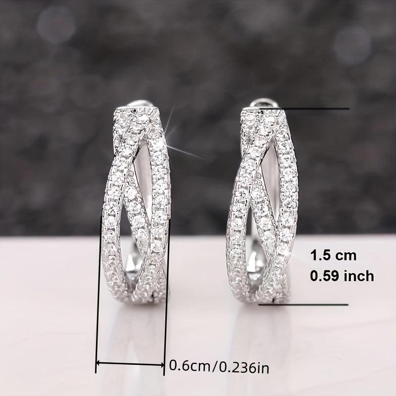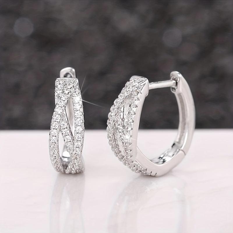 These stylish copper hoop earrings feature intertwined design with synthetic zirconia decoration, perfect for daily wear. They are nickel plated and have a Valentine's and April birthstone theme.