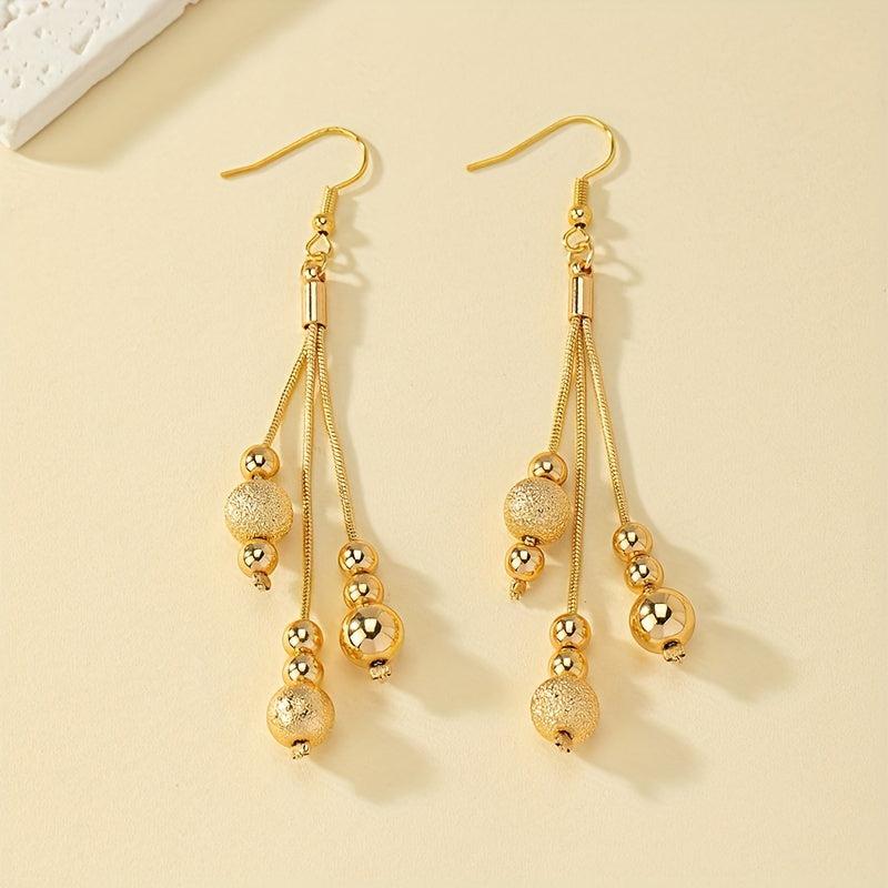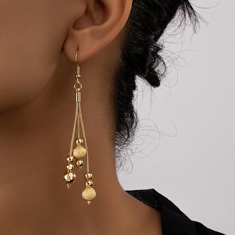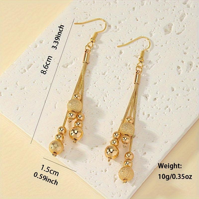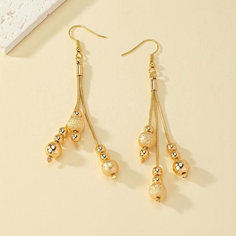 Add a touch of sweetness to your holiday look with these copper long tassel round beads dangle earrings. Perfect for adding a festive flair to your outfit.