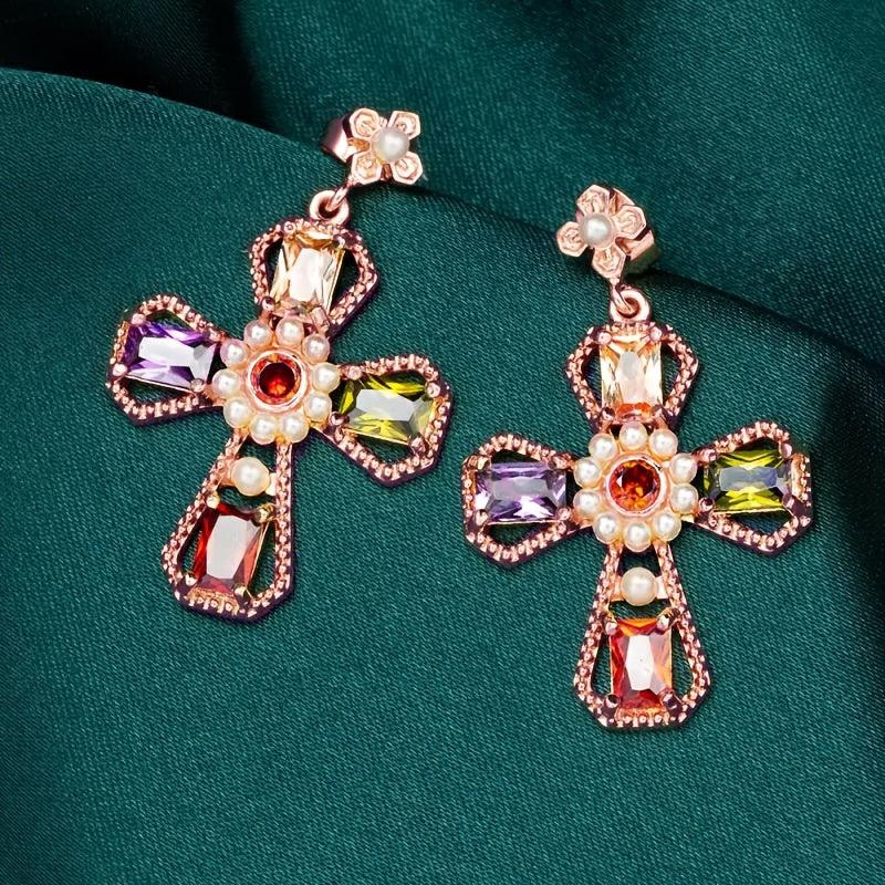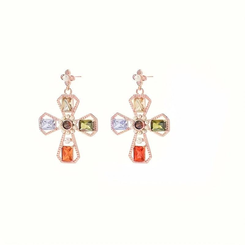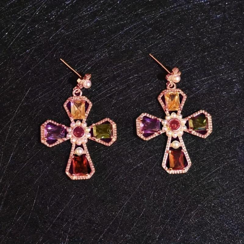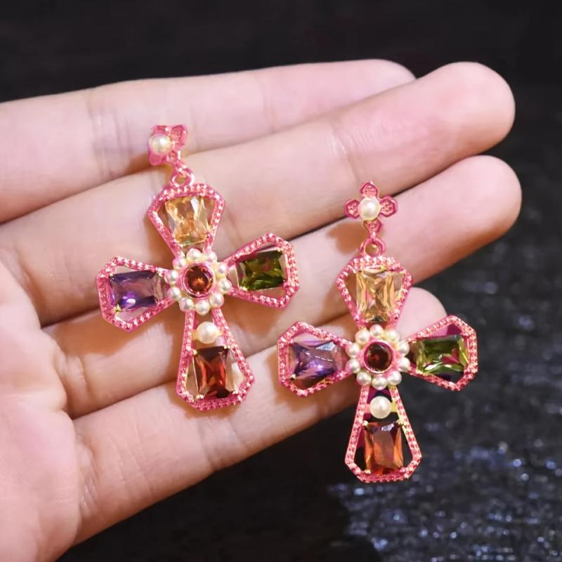 Cross Pendant Earrings & Colorful Cubic Zirconia Cross Earrings