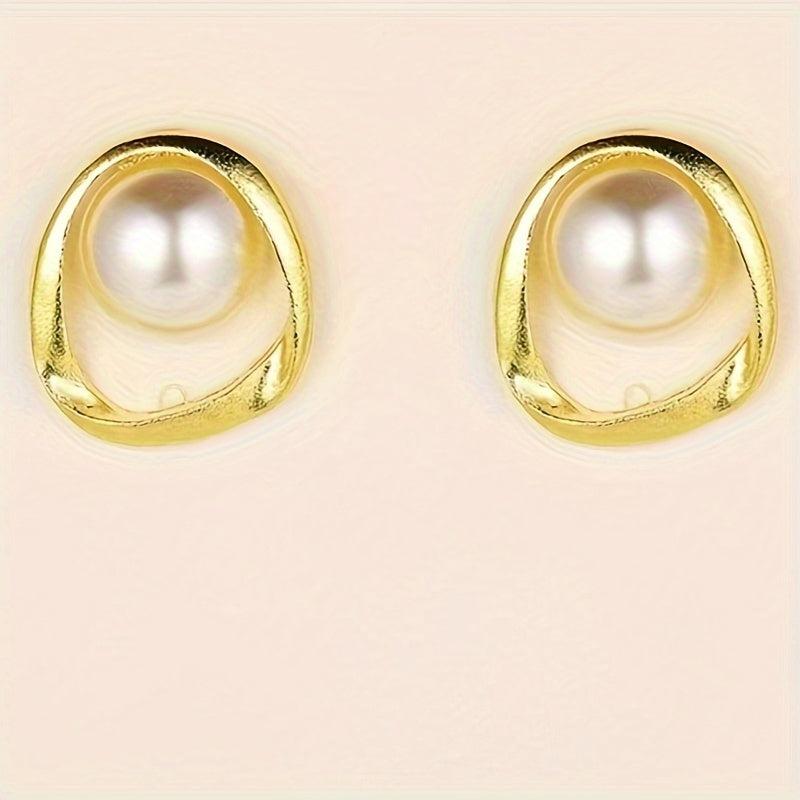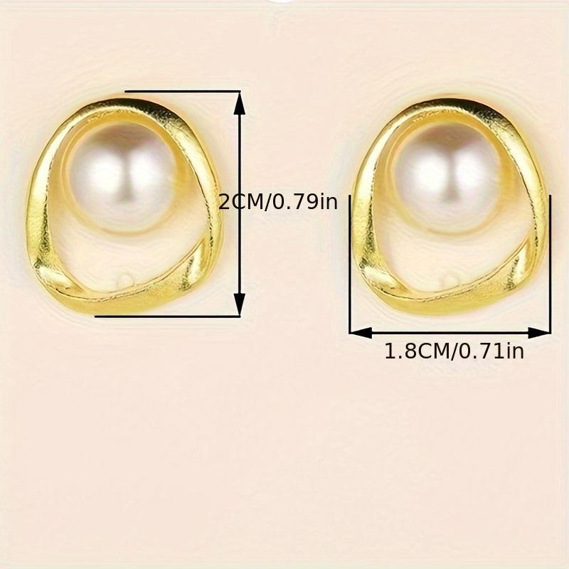 These dainty faux pearl stud earrings feature a hollow classic design with a faux pearl center. Perfect for daily wear and adding a touch of elegance to any outfit.