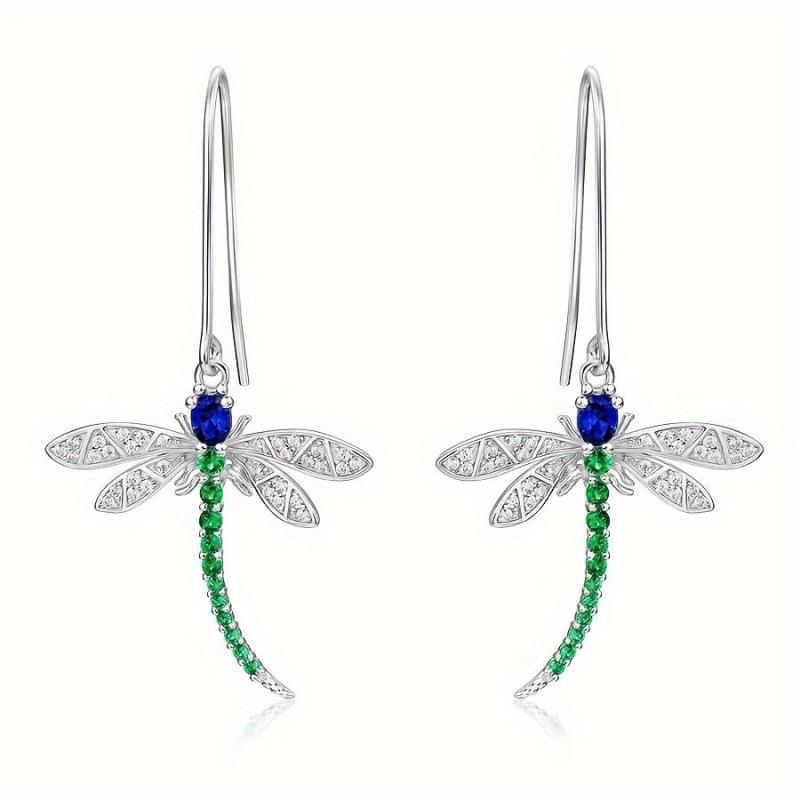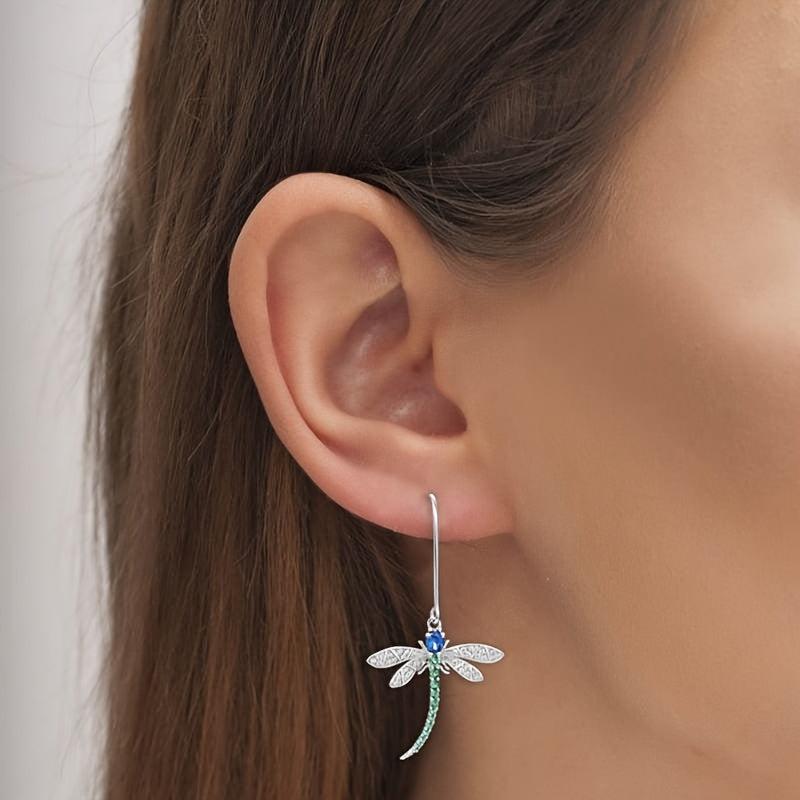These elegant drop earrings are designed in a creative dragonfly style with green synthetic zirconia to add a touch of sparkle to your look. Perfect for both casual everyday wear and special occasions.