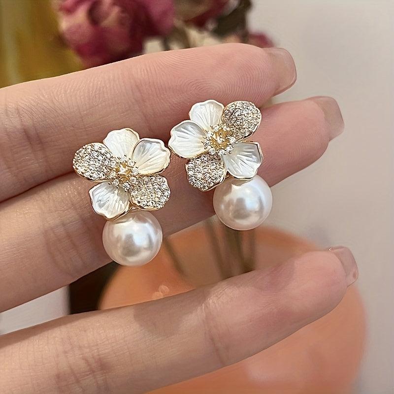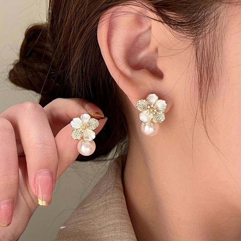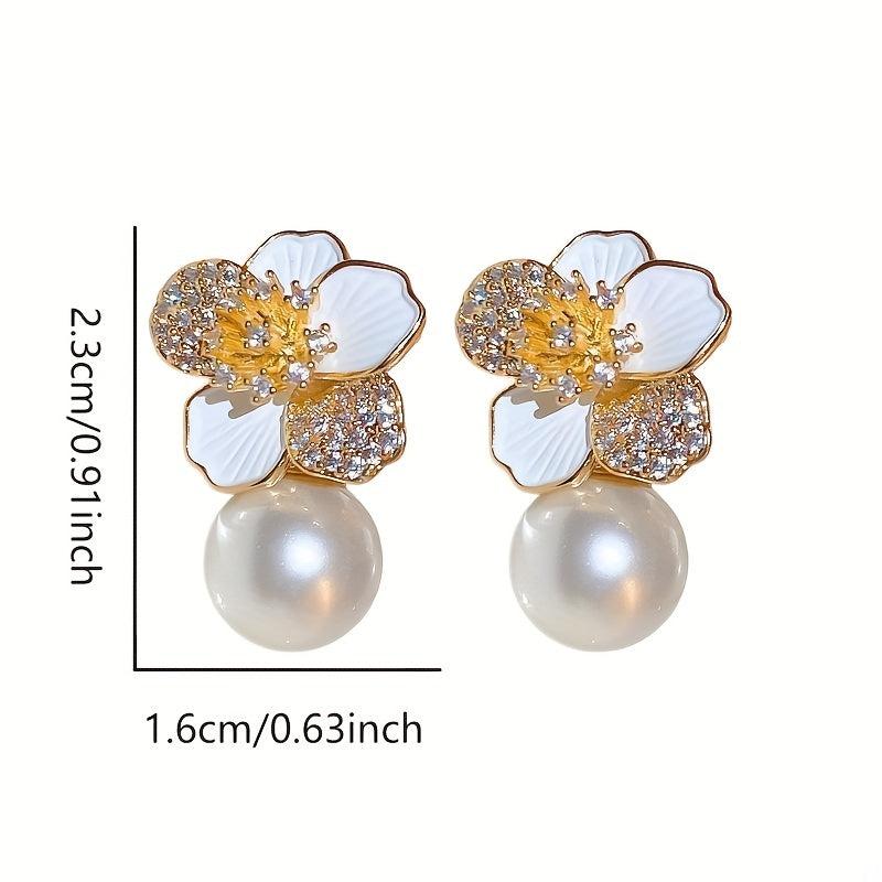 These charming dangle earrings feature enamel flowers with shimmering pearl accents, inspired by Japanese design. A perfect gift for her.