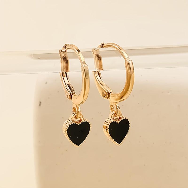 These enamel heart dangle earrings are a stylish and charming accessory. Perfect as a gift for a loved one or yourself.