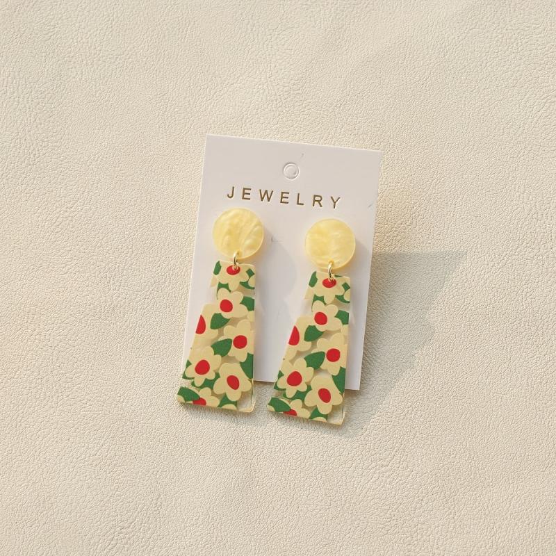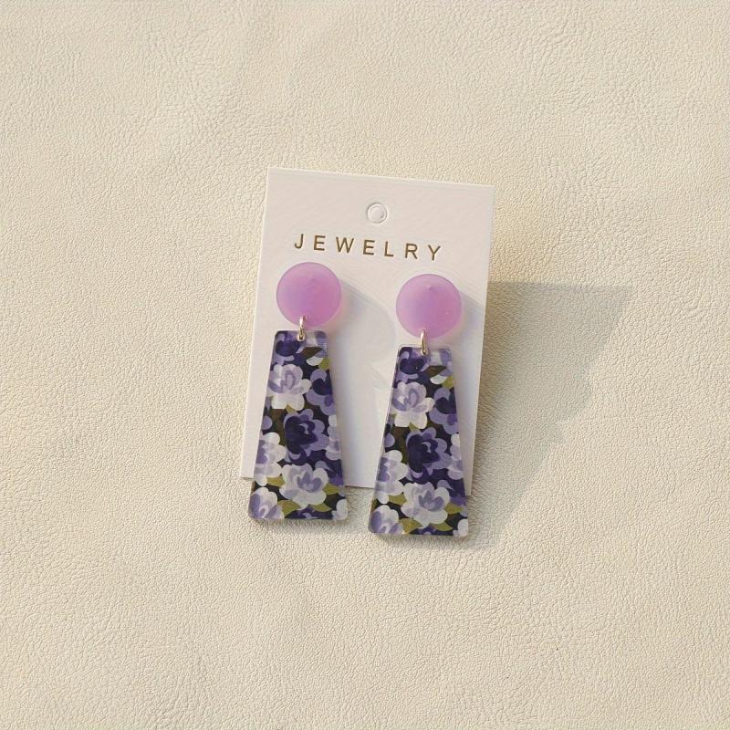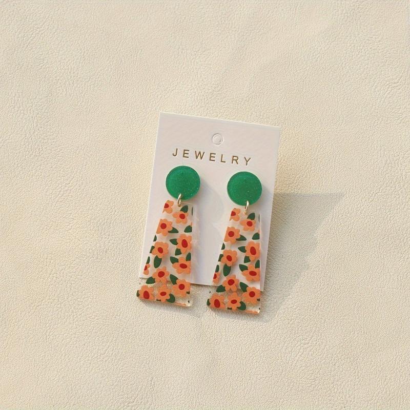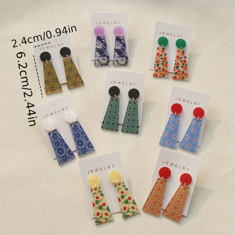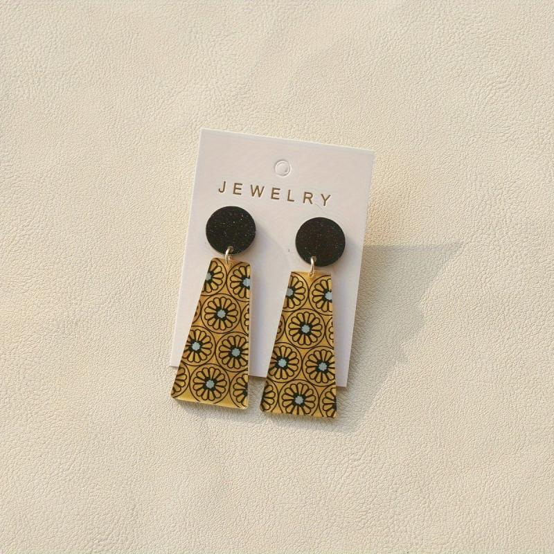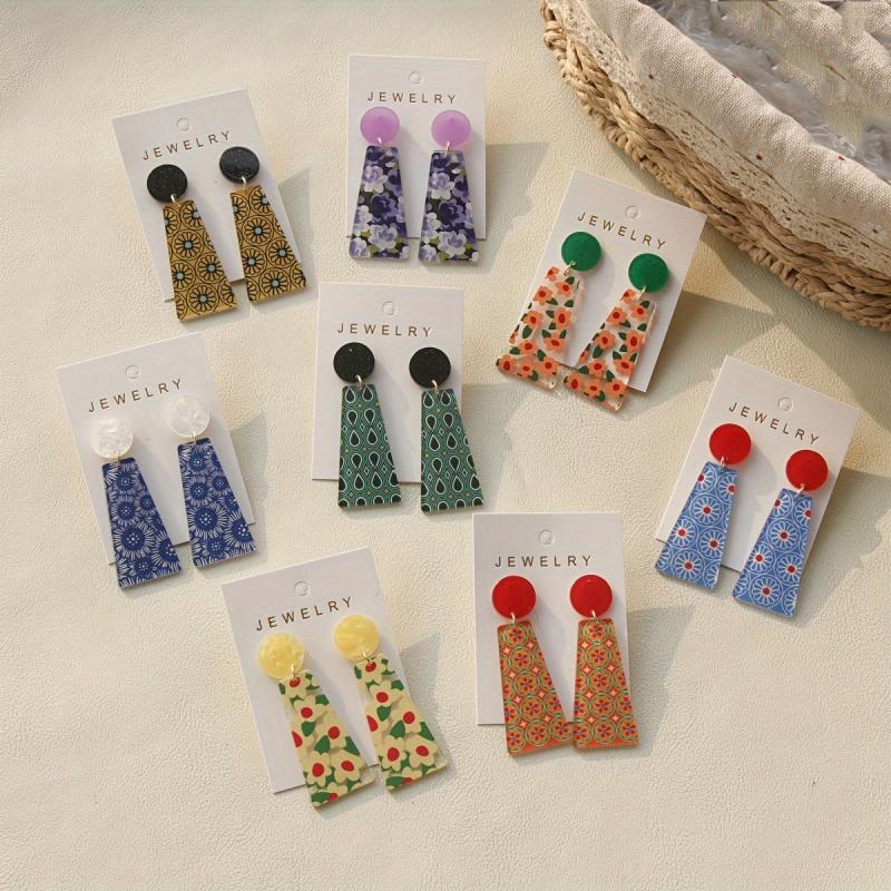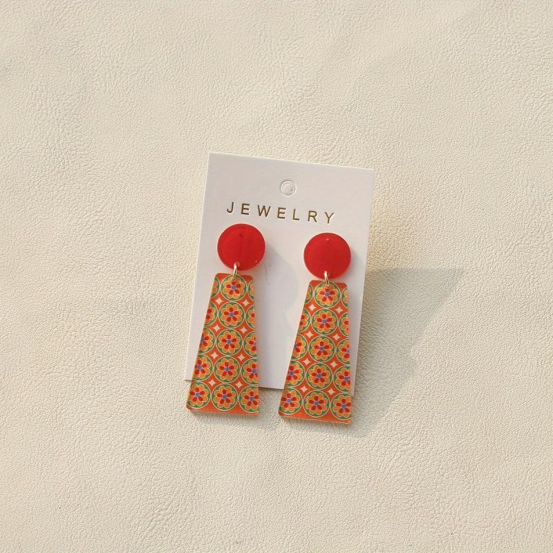 Get a retro vacation and party look with these ethnic totem floral graffiti earrings. Made of acrylic, these trapezoid earrings will make a statement wherever you go.