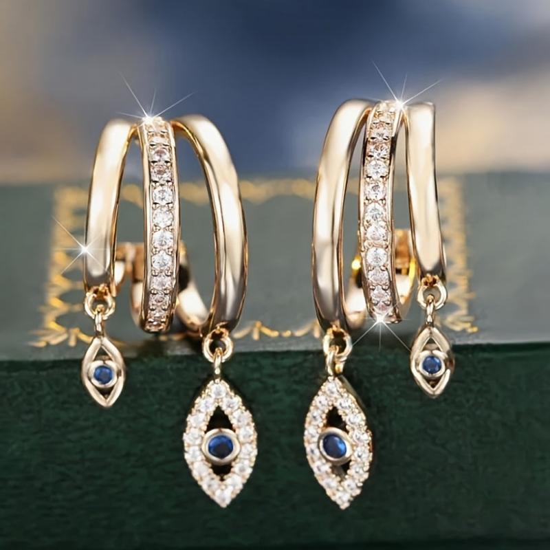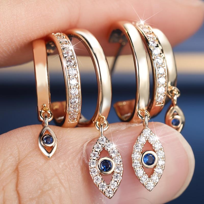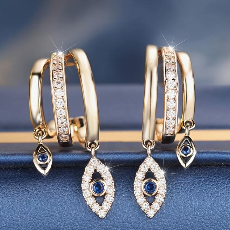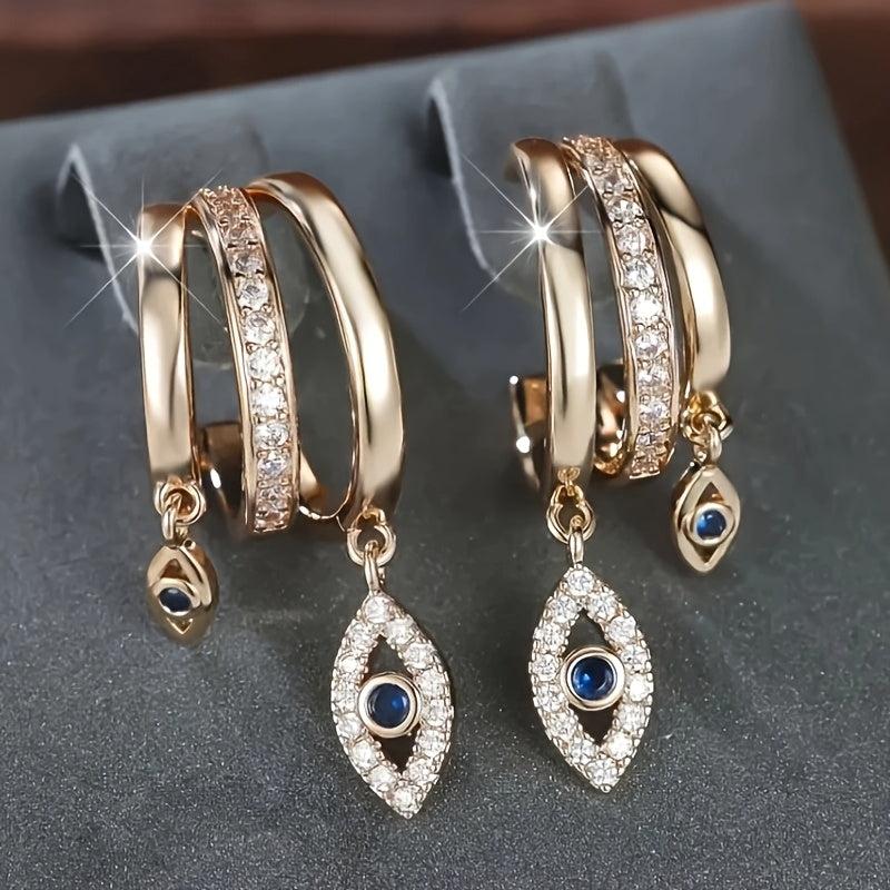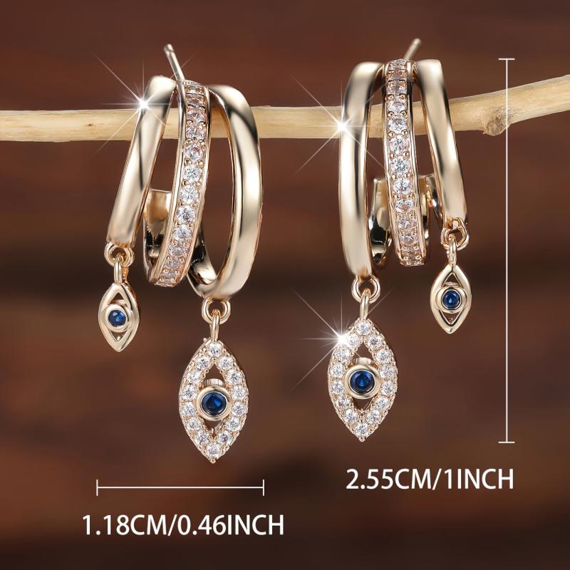 Add a touch of glamour to your outfit with these stunning Evil Eye Dangle Earrings. Perfect for parties, banquets, and weddings, these earrings are made of copper with synthetic zirconia for an elegant and sophisticated look.