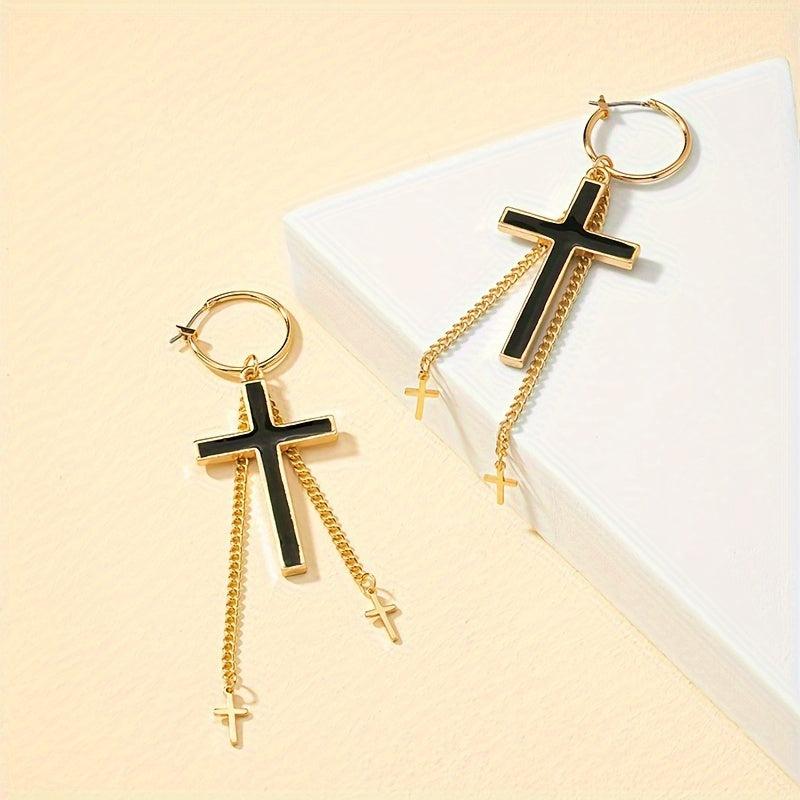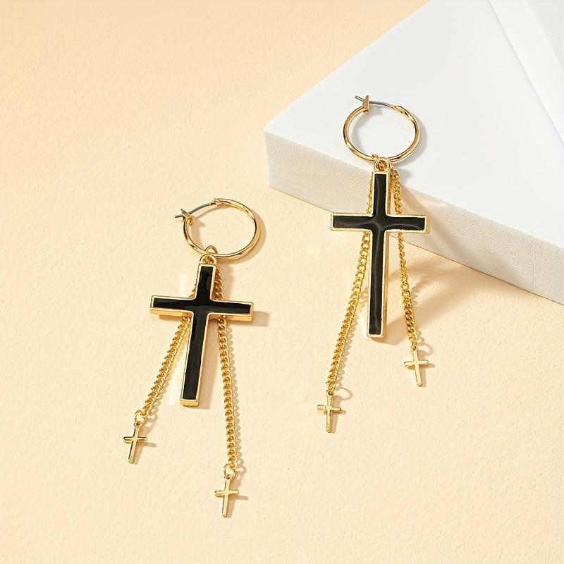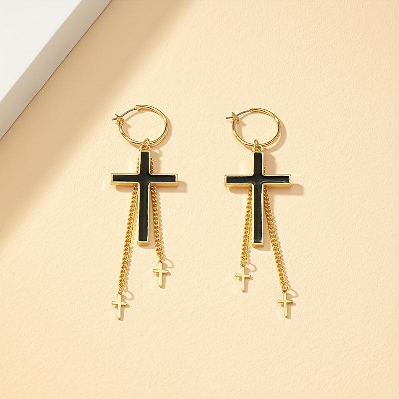 These stylish alloy earrings feature a cross design that adds a touch of faith to your outfit. Perfect as a gift for any occasion.