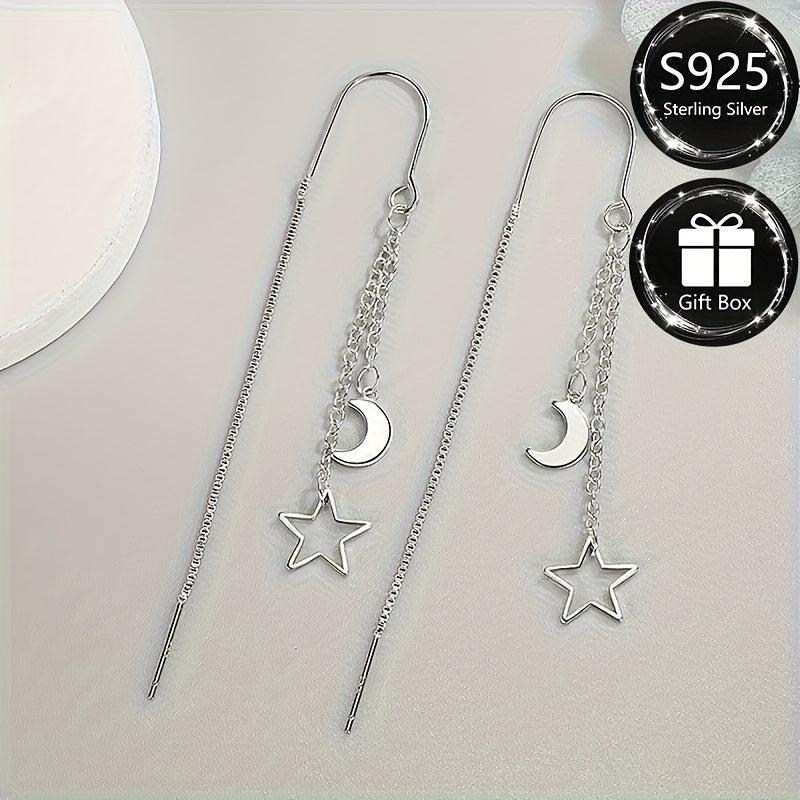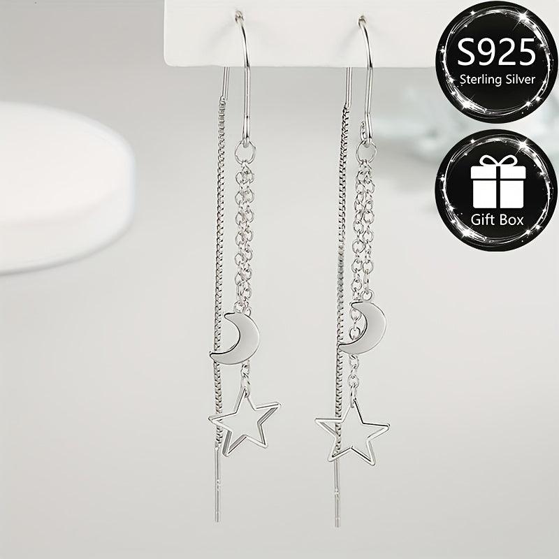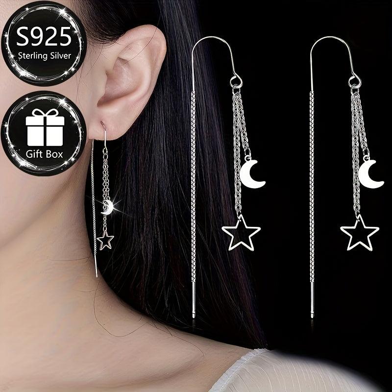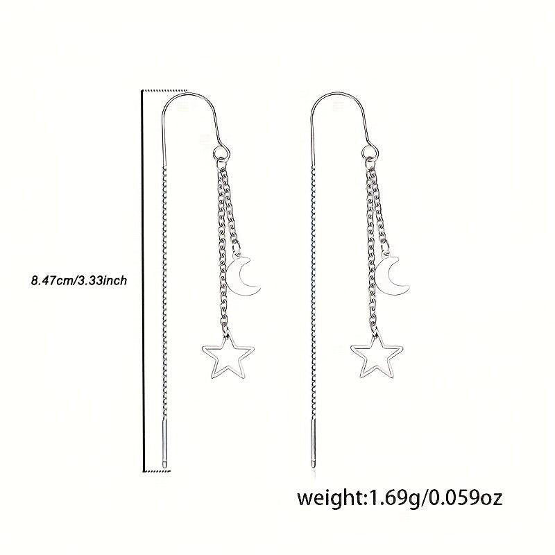 These tassel earrings feature a hollow star and moon design, making them suitable for any occasion. They are lightweight at 1.69g (0.059oz) and perfect for ladies with allergies.