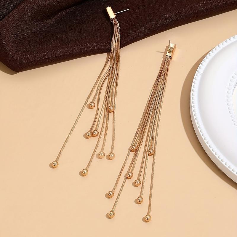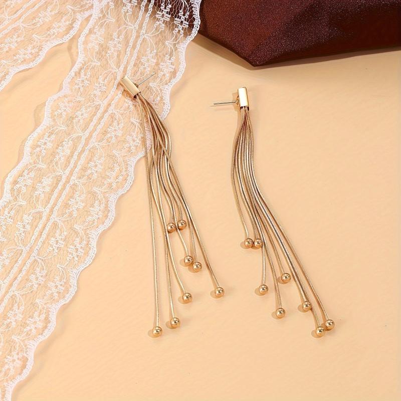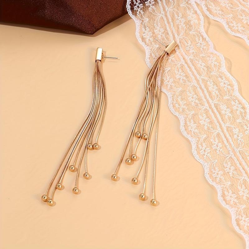 Elevate your style with these trendy snake chain tassel earrings that add a touch of glamour to any outfit.